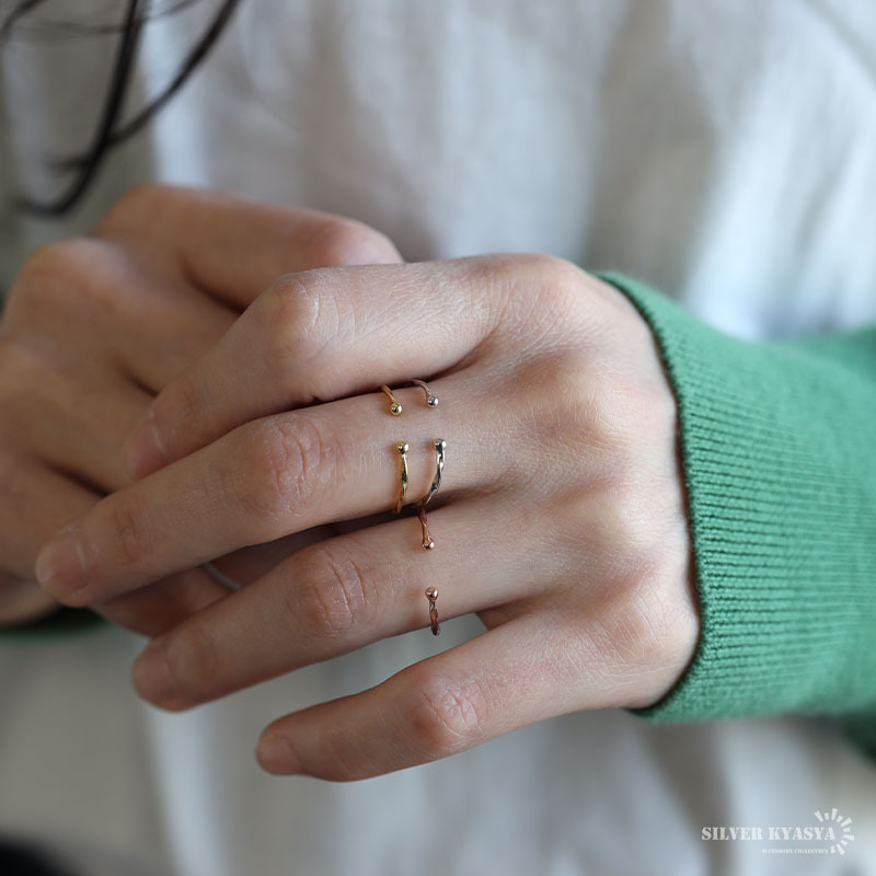 サイズ | 幅:約1mm~約2mm 厚み:最大約1.5mm 号数:11号~13号程度調整可能(オープンリングのため調整可能) |