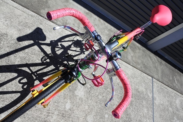 日東B266ハンドルにダイヤコンペのギドネットレバーでスマートに街乗りできるルックスです。