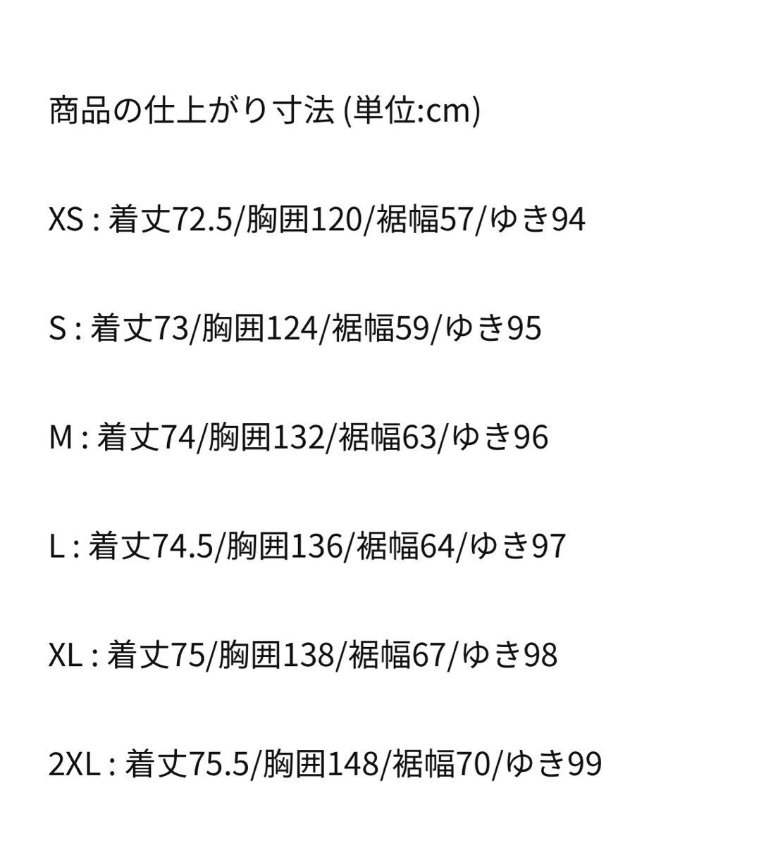 2XL: 着丈75.5/胸囲148/裾幅70/ゆき99