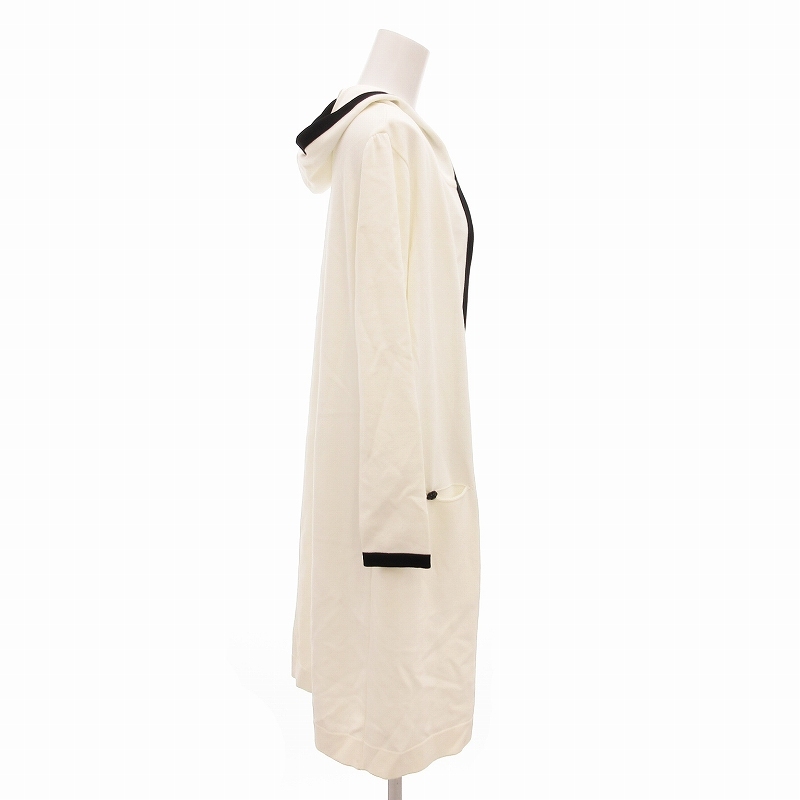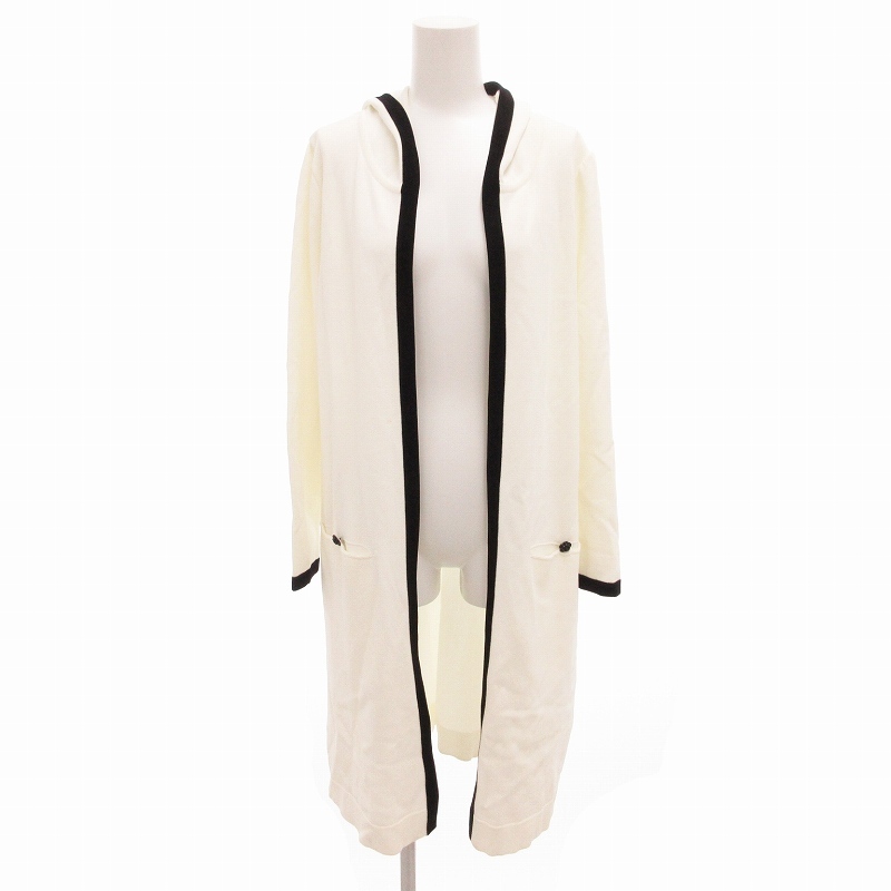 ルネ Rene basic ロングカーディガン 羽織り フード バイカラー 白 ホワイト 黒 ブラック 36 /FF IBO63 レディース