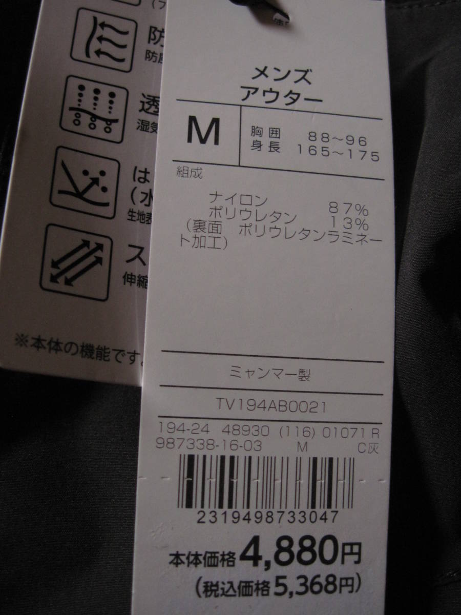 イオン TOPVALU 防水透湿パーカ M 濃灰系