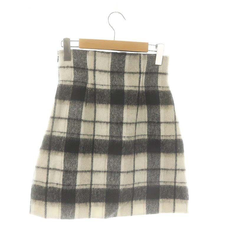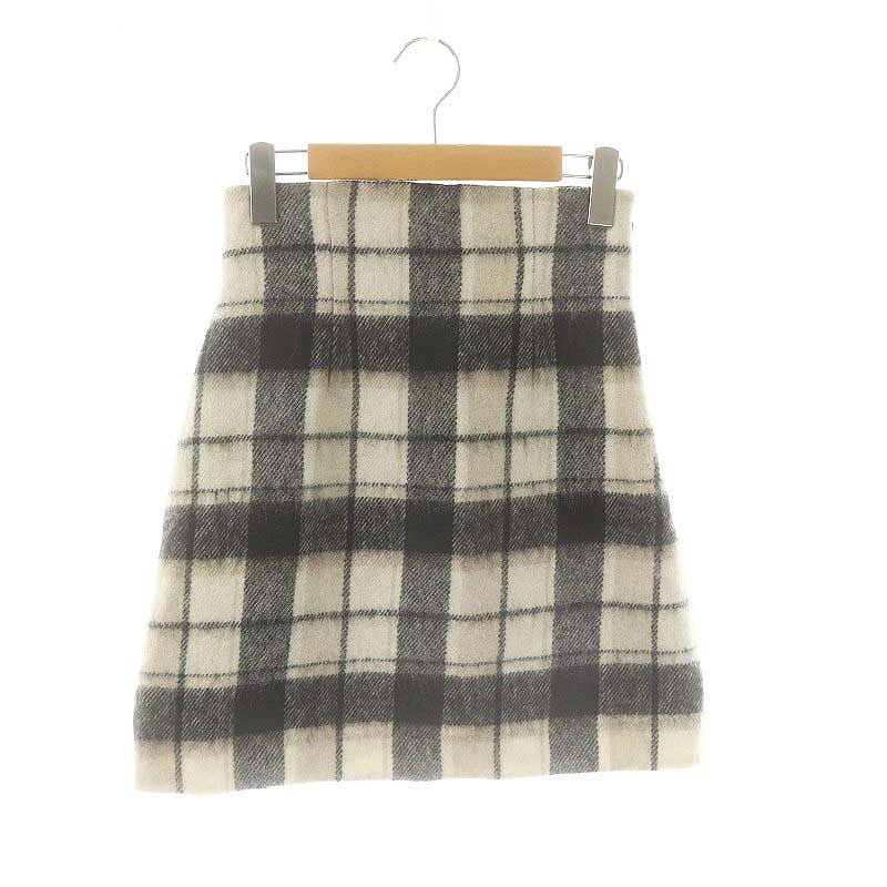 未使用品 デイシー deicy シャギーチェックスカート ミニ フレア 0 オフホワイト 黒 ライトベージュ /DO ■OS レディース