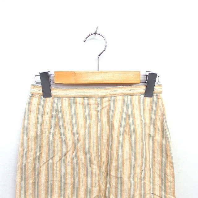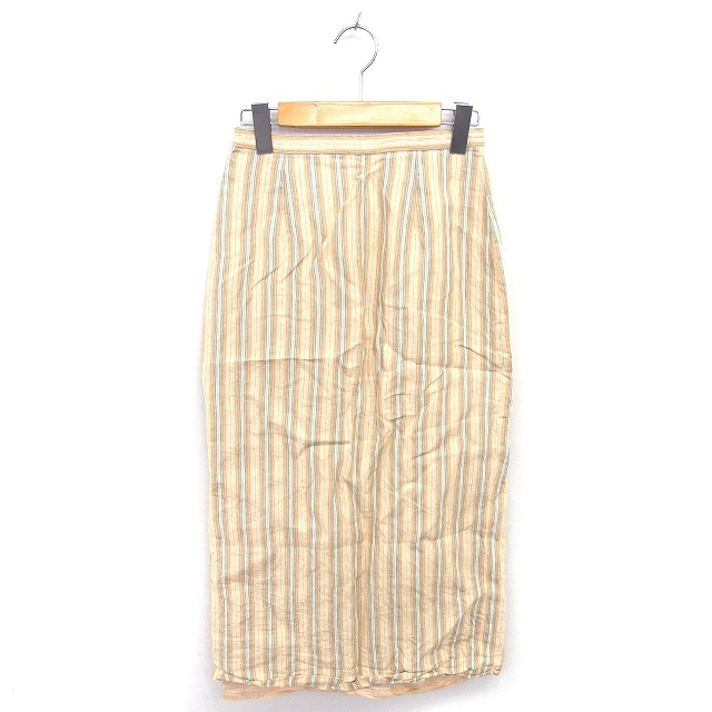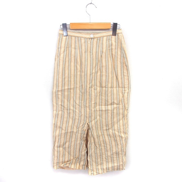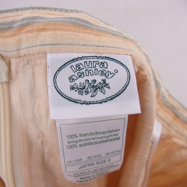 ローラアシュレイ LAURA ASHLEY タイト スカート ロング ストライプ リネン 薄手 バックスリット 9 ベージュ 薄茶 /TT