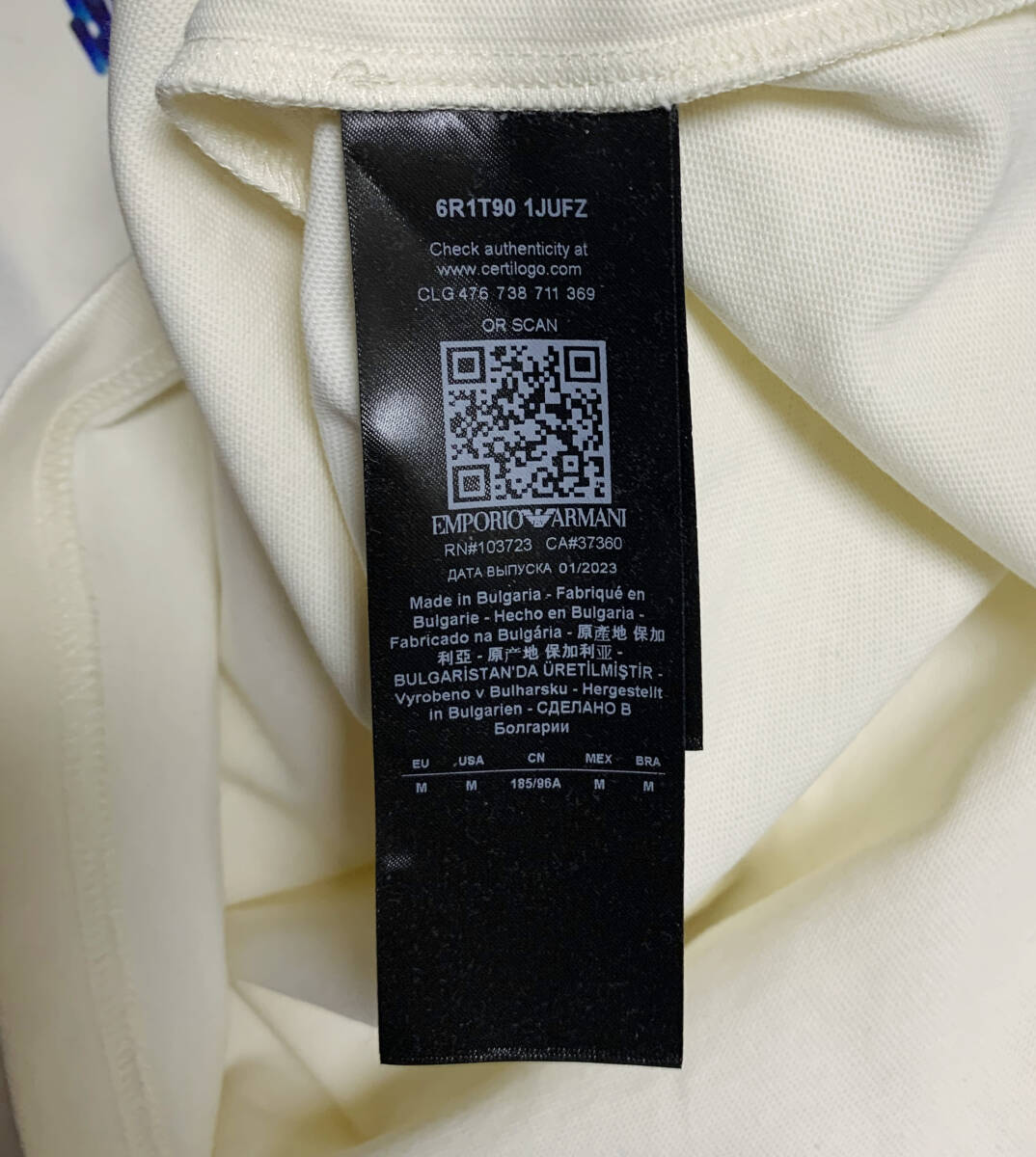 こちらのプルオーバーは、メーカーによる偽物コピー品対策としての照会可能なオリジナルQRコードによって、エンポリオアルマーニの本物製品であることが保証されています。