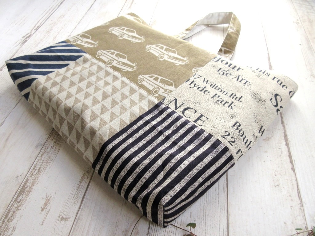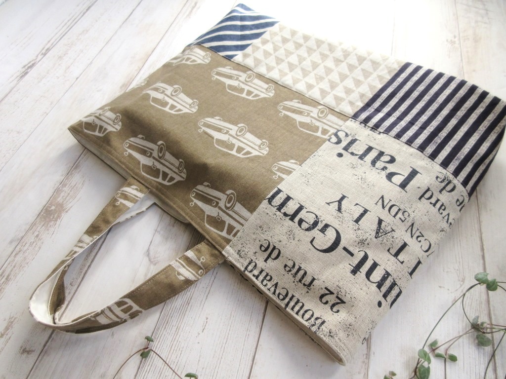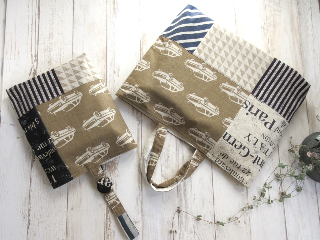 ハンドメイド☆レッスン・通園バッグ&シューズバッグ(CAR・ベージュ)