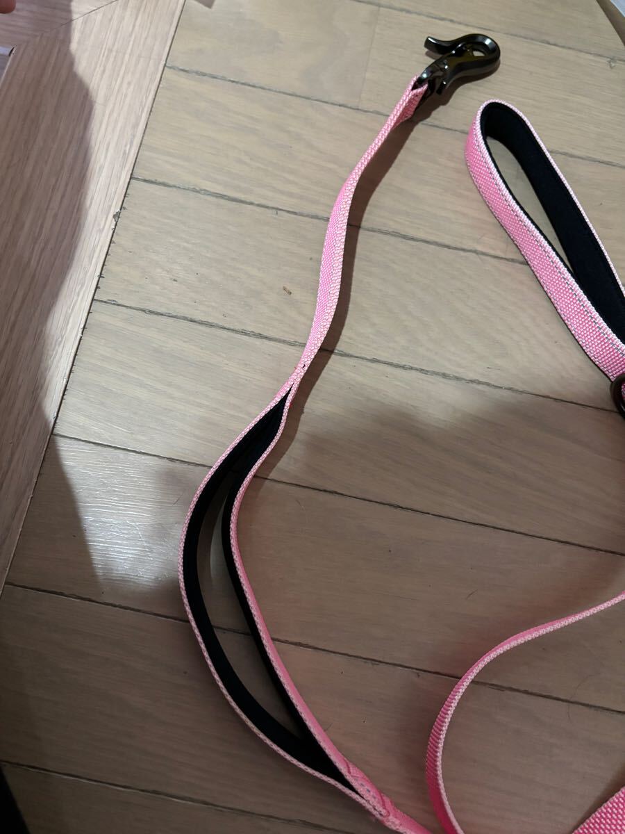 ナイロン製のピンクのリード、クッション付きで快適な使用感。