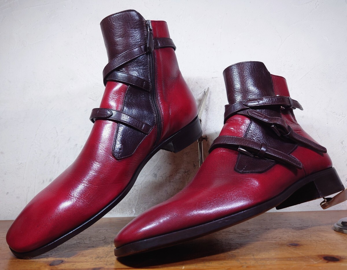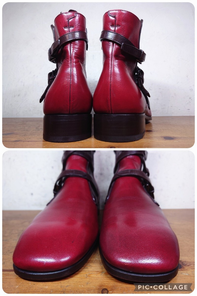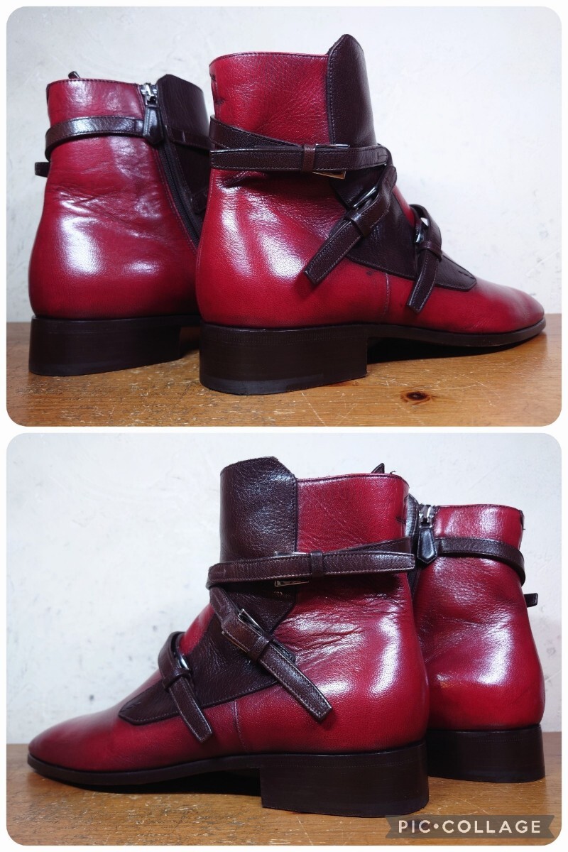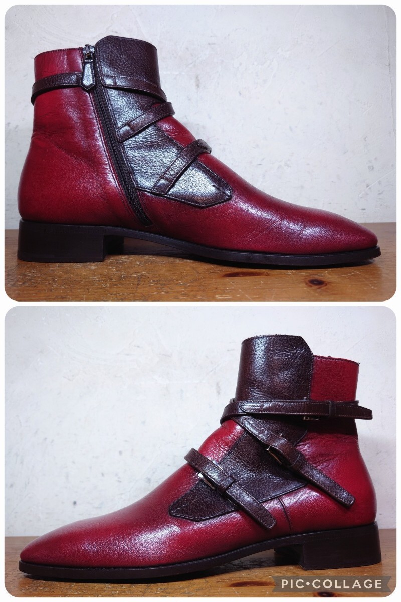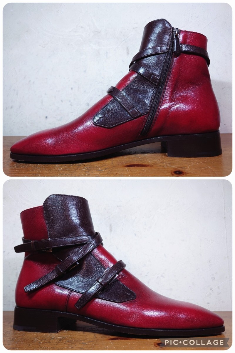 アッパーはシボ感のあるグレインレザー、トリプルベルト・サイドジップ仕様の遊び心のあるデザインが魅力の一足。