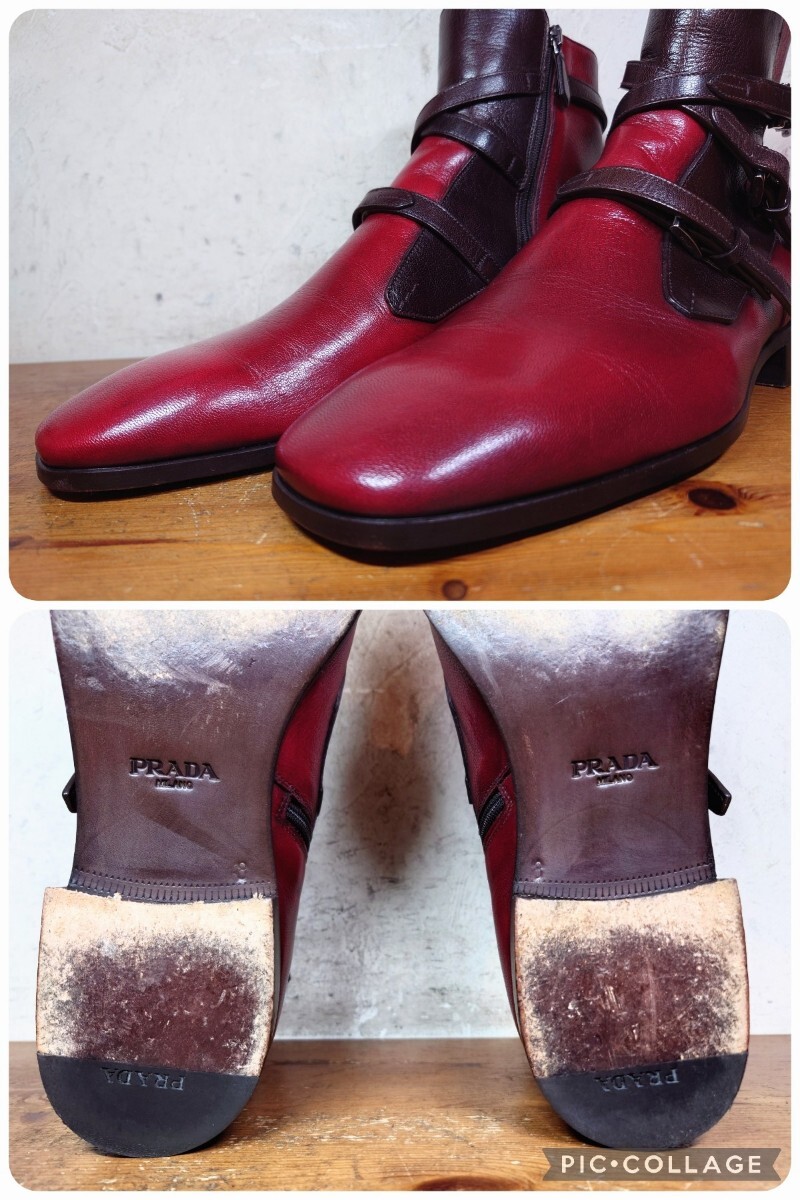【美品/送料無料】ITALY製 PRADA/プラダ サイドジップ ジョッパーブーツ SIZE:8 27-27.5cm相応 です。