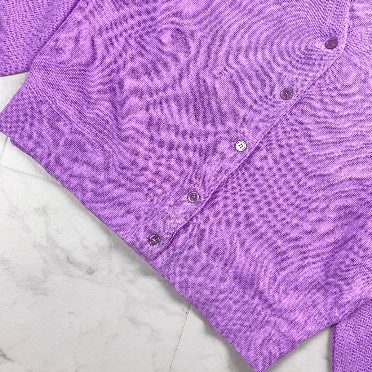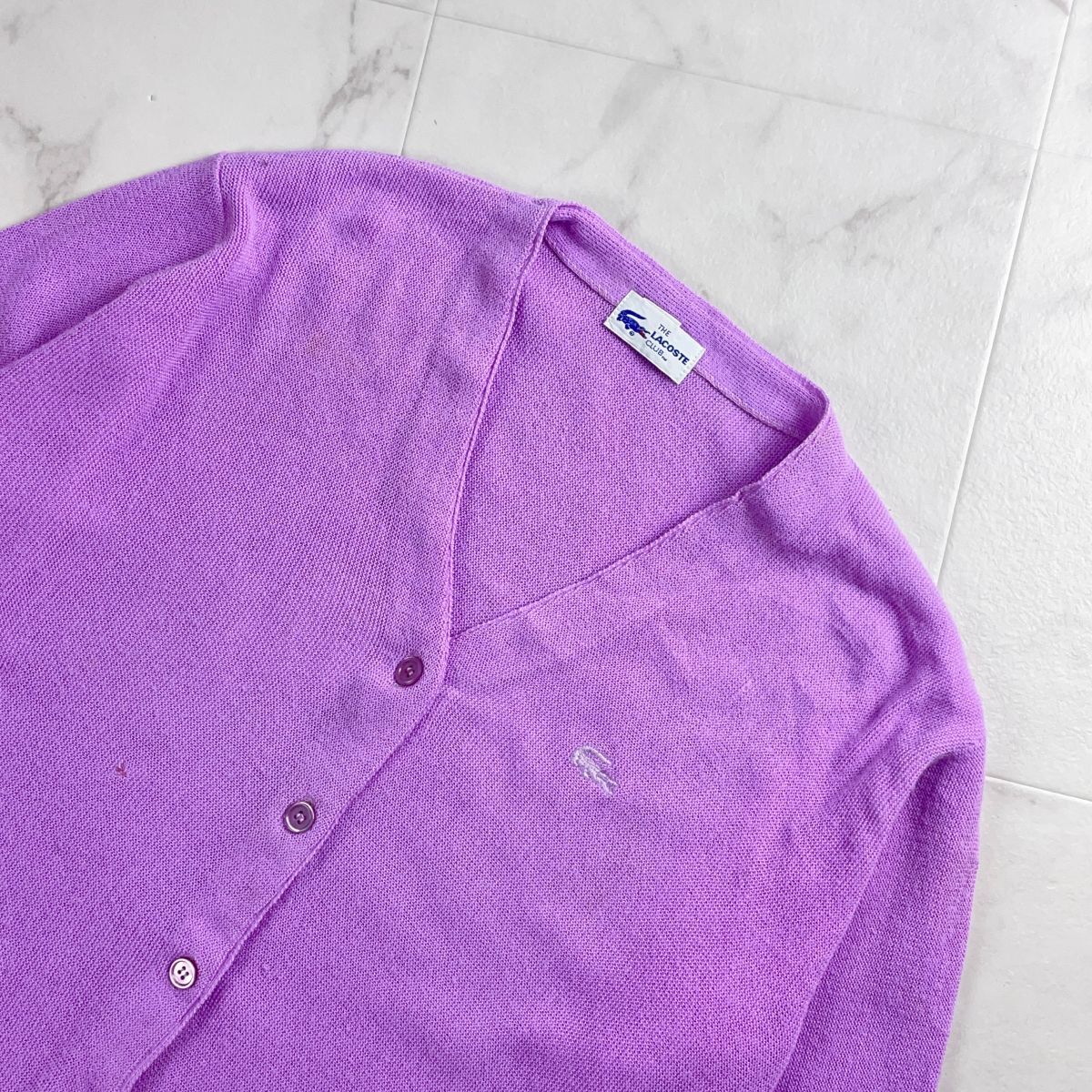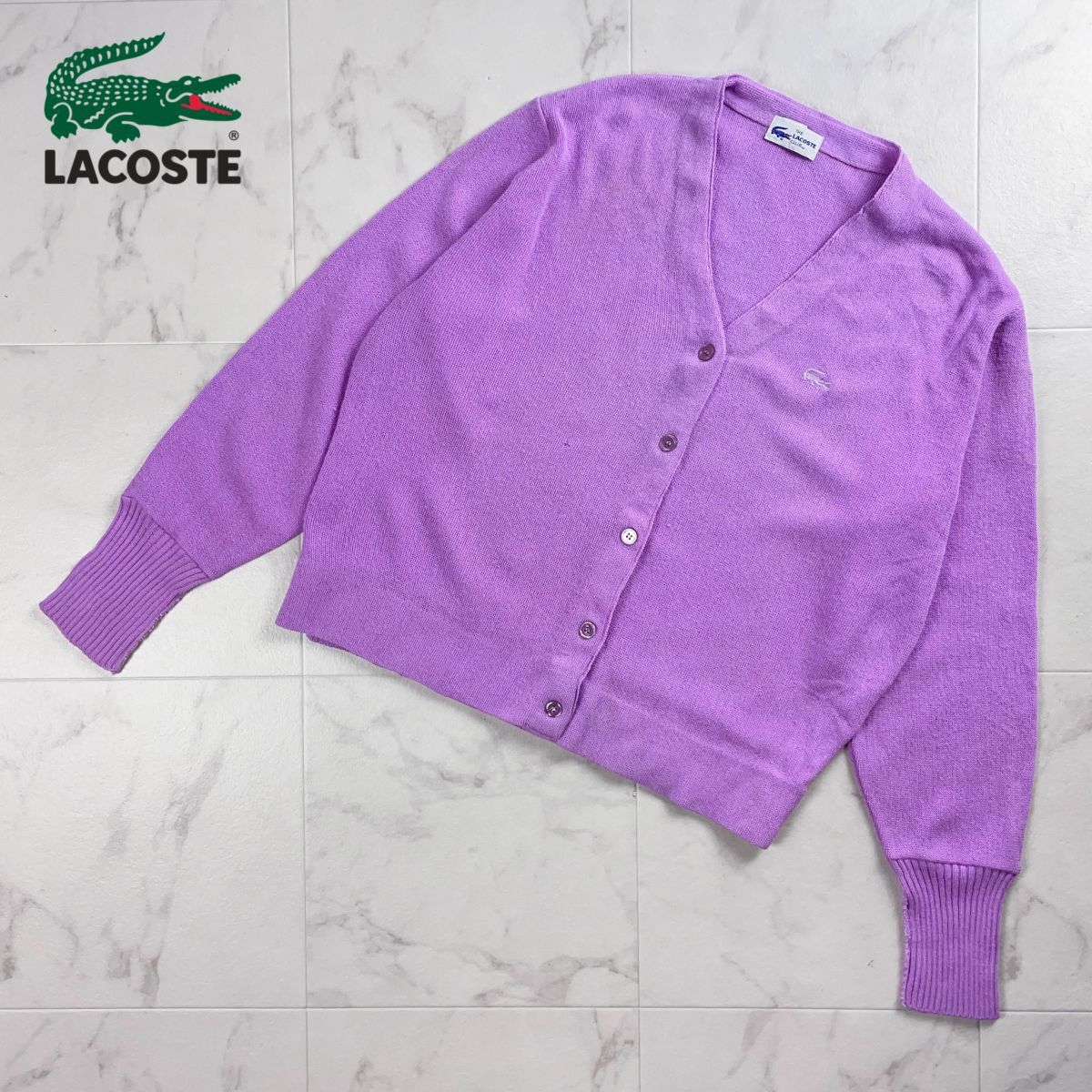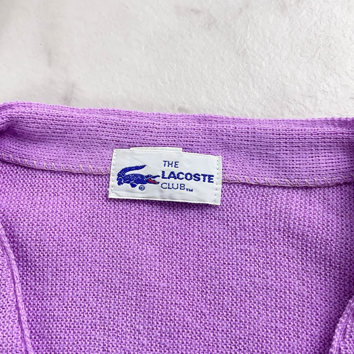 THE LACOSTE CLUB ザ ラコステクラブ Vネックカーディガン USA製 ロゴ刺繍 トップス メンズ ライトパープル 紫 サイズ38*YC535