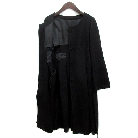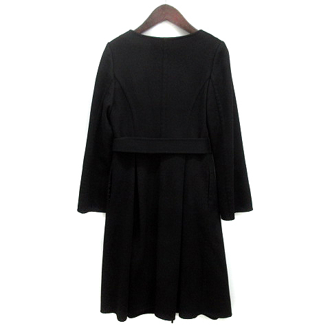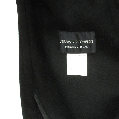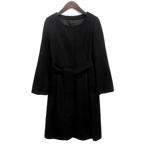 ストロベリーフィールズ STRAWBERRY-FIELDS ウール カシミヤ ダブルフェイス ノーカラー コート ベルト付き ブラック 黒 レディース