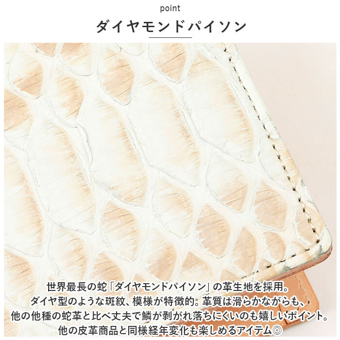 | 素材 | [表面]ダイヤモンドパイソン(蛇革) [インナー]ヌメ革 |