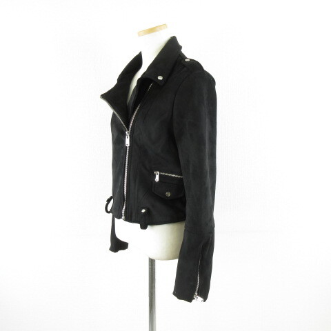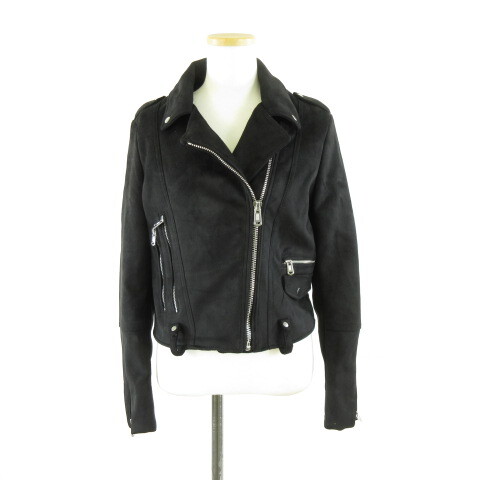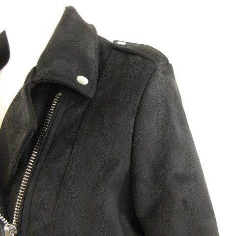 ザラ ZARA フェイクスードライダースジャケット ジップアップ 長袖 黒 M *A778 レディース