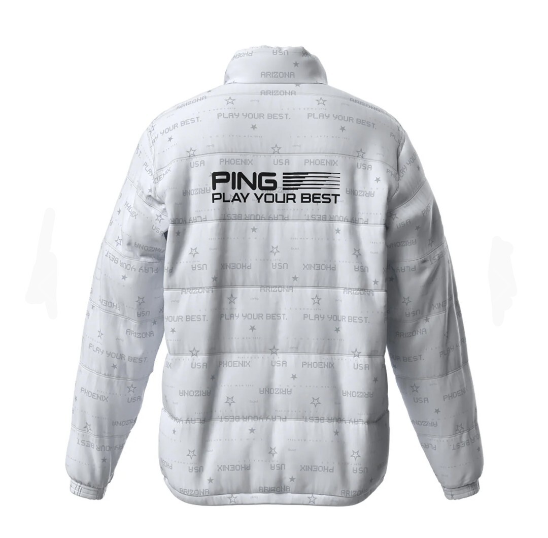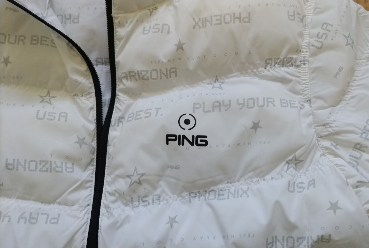 即決新品 PING GOLF 全方向ストレッチ フルジップ中綿ジャケット ホワイトパターン Lサイズ ピンゴルフ