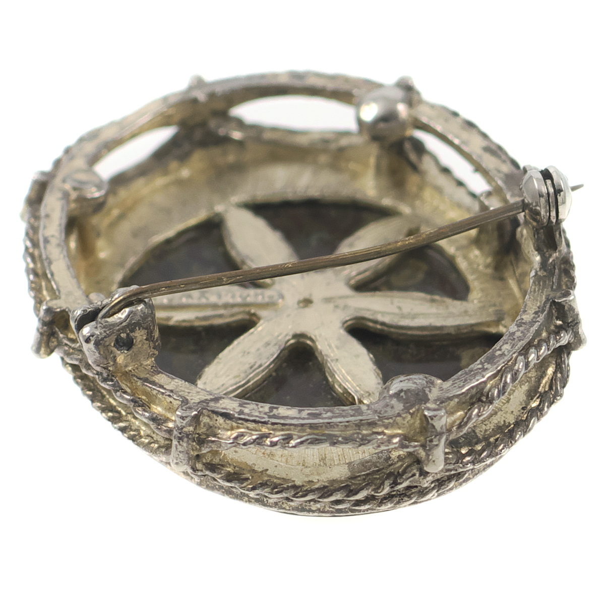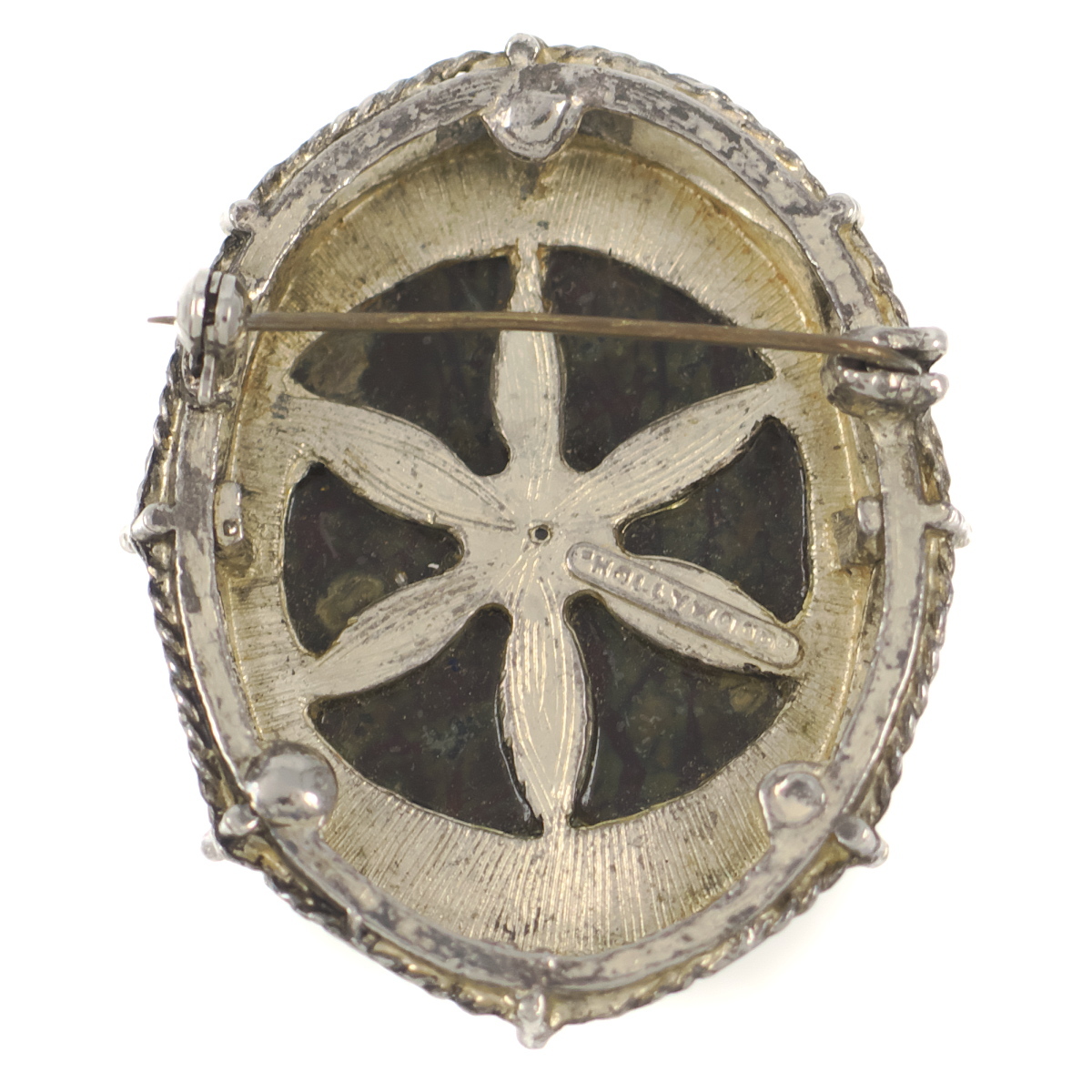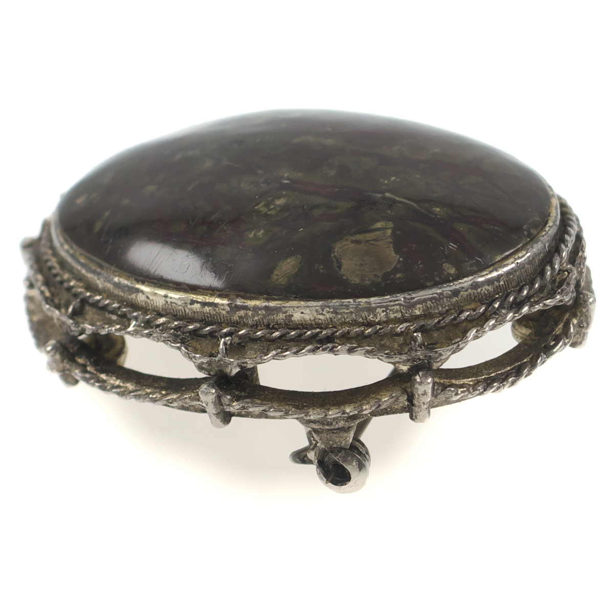 UK3070◆【HOLLYWOOD】◆ オーバルシェイプ 大粒 マーブルストーン ハリウッド ◆ ヴィンテージブローチ ◆ イギリス ケルト 英国 ◆