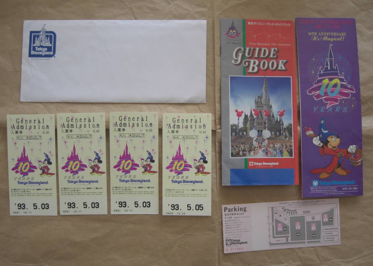 ディズニーランド 1993 10周年 ガイドブック today(限定版) チケット 駐車券 封筒 セット パンフレット チラシ リーフレット