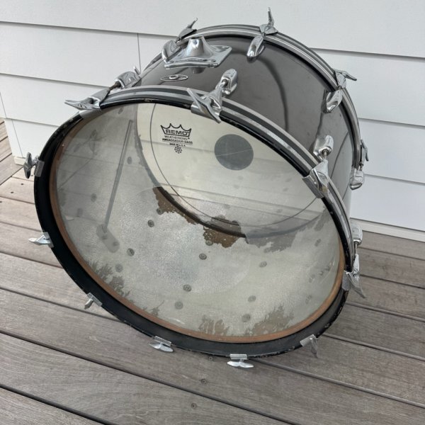 ◎アメリカ製の貴重なバスドラムです。歪みはありませんが全体的に使用感が強く、錆や汚れが多い状態です。
