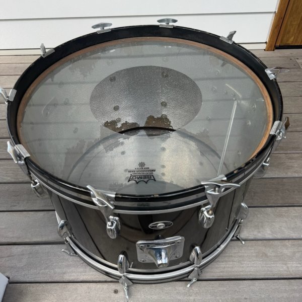 サイズは22x18インチになります。固定脚は一本欠品。タムホルダーも付属しません。バスドラム本体のみとなります。
