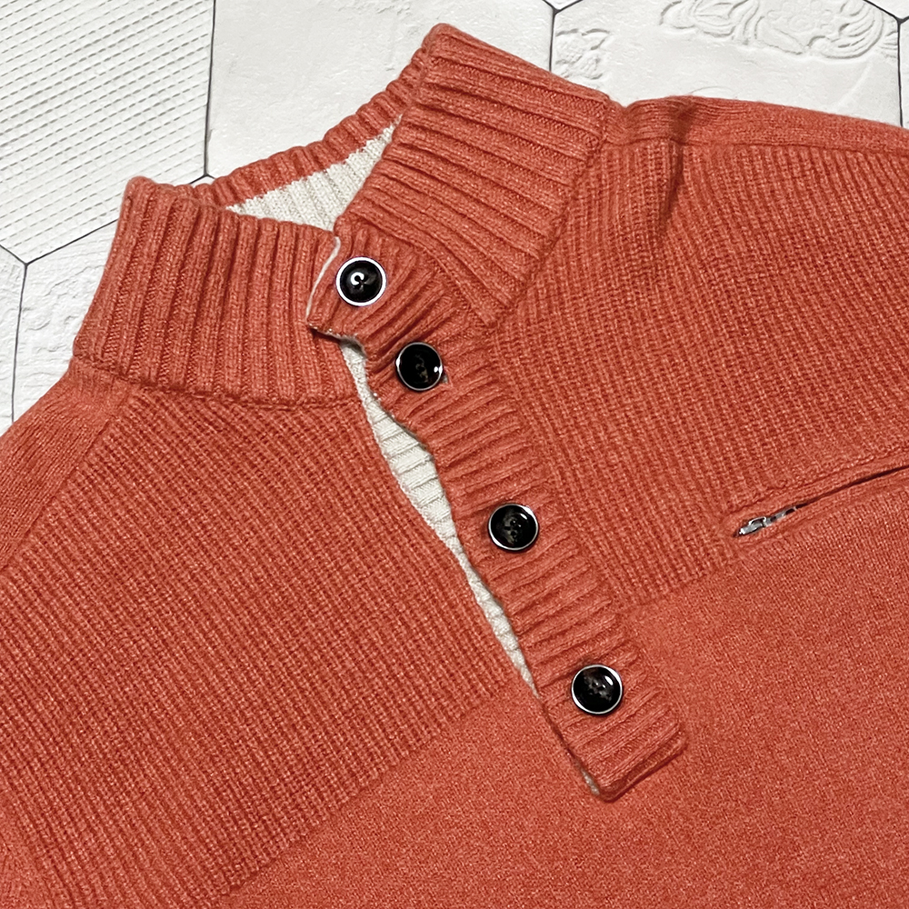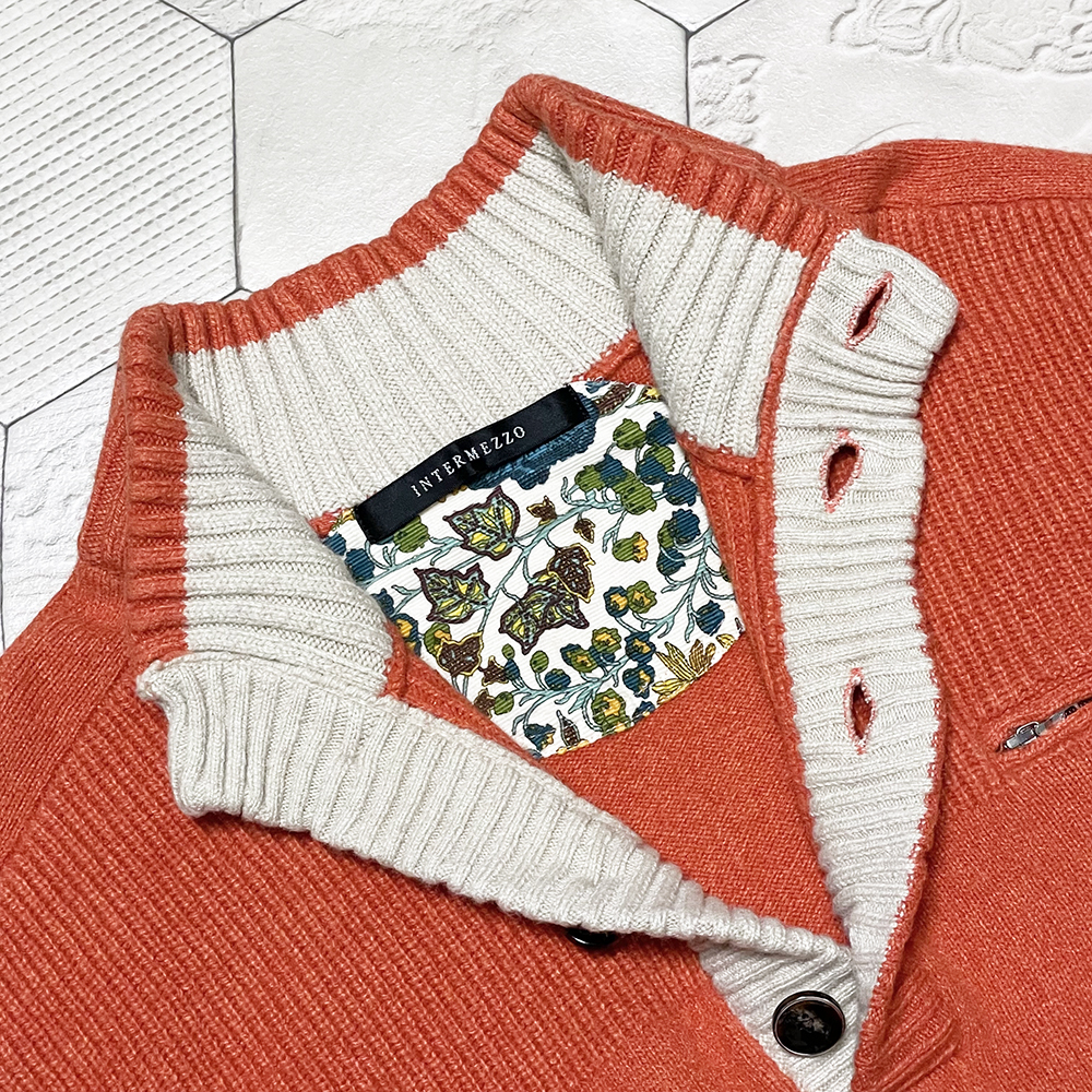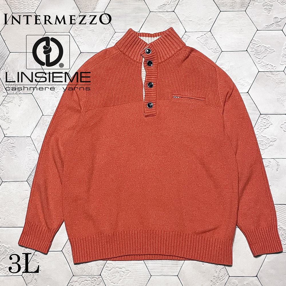 定価22,000円 美品 インターメッツォ【INTERMEZZO】イタリアLINSIEME社 カシミヤ混ウール ハイゲージ メランジニットポロ 3L バーミリオン