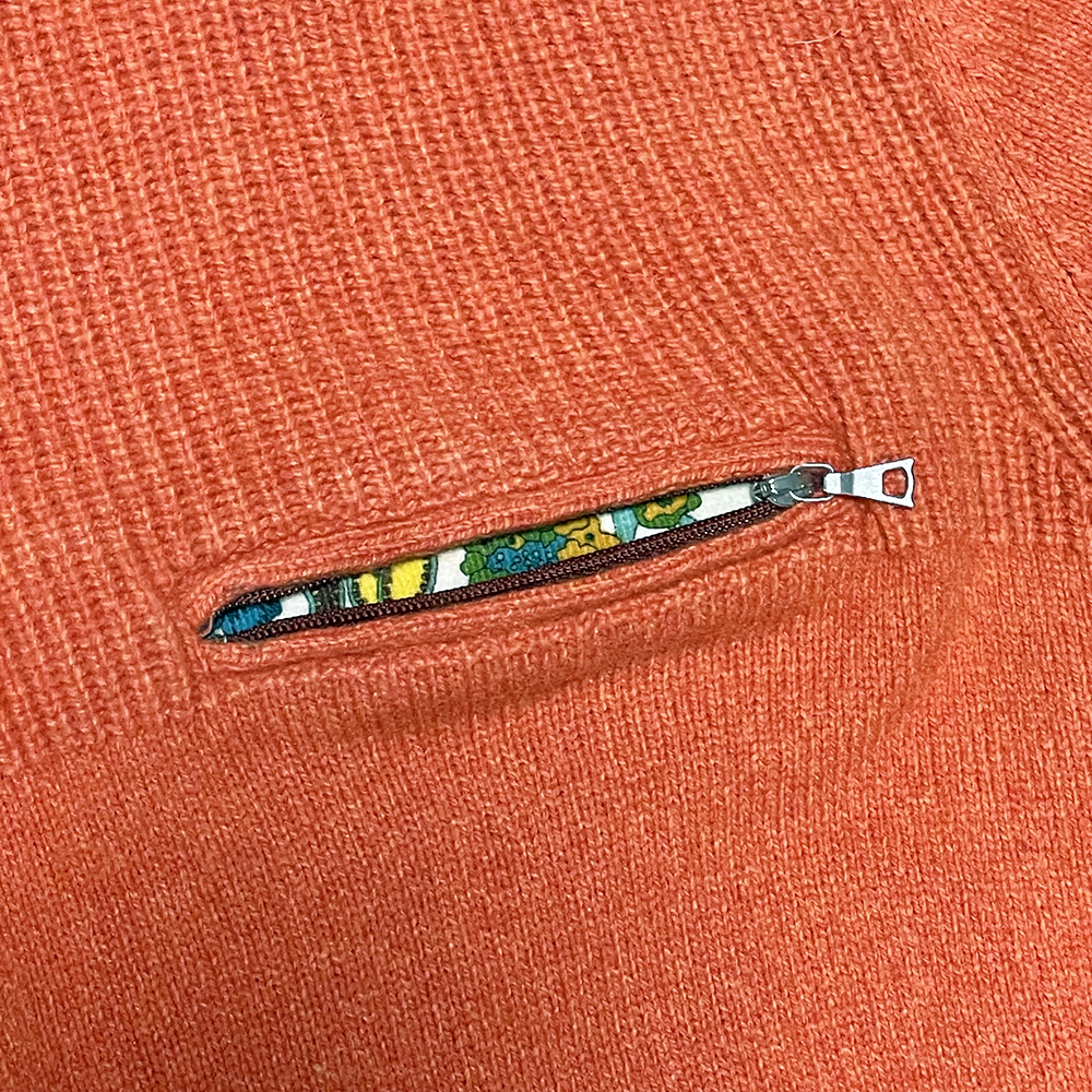 特別に発注したカシミヤ混紡のメランジニットをボディに使用。