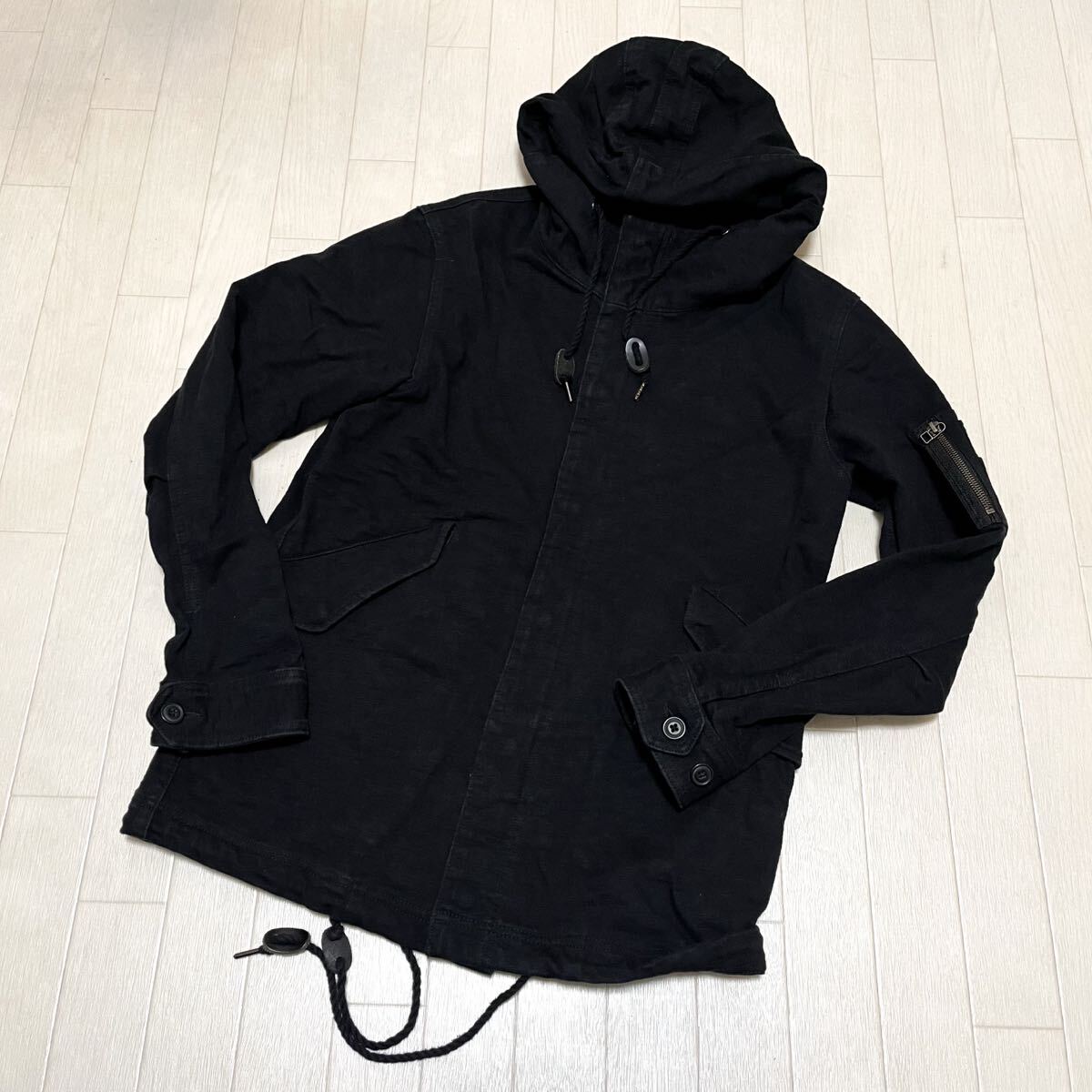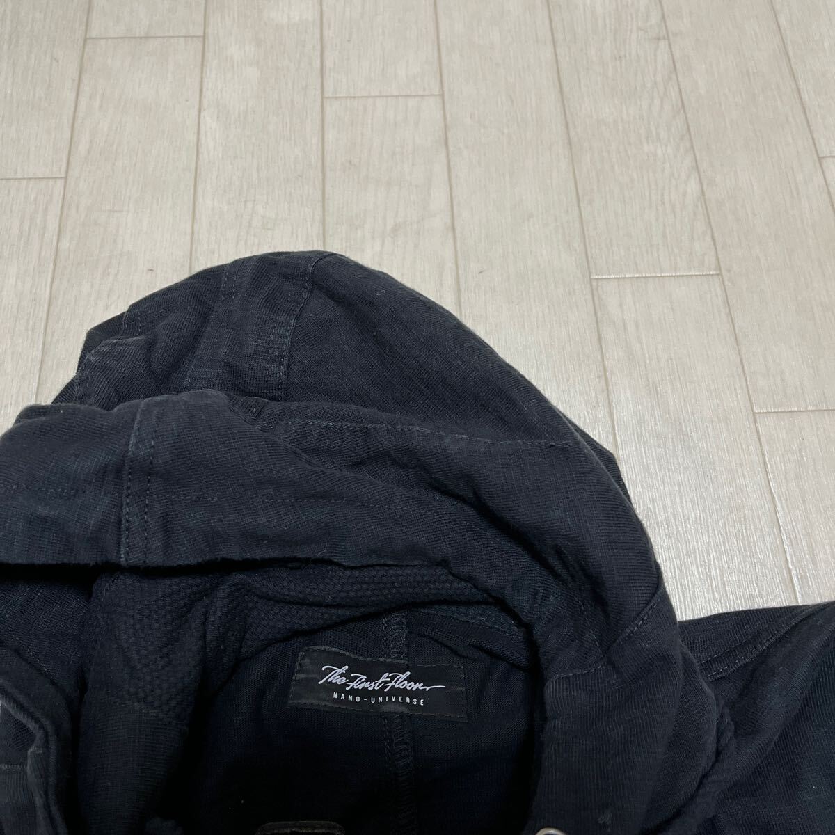 和651★ nano universe The First Floor ナノユニバース ミリタリージャケット 比翼ジップアップ ジップアップパーカー S ブラック メンズ