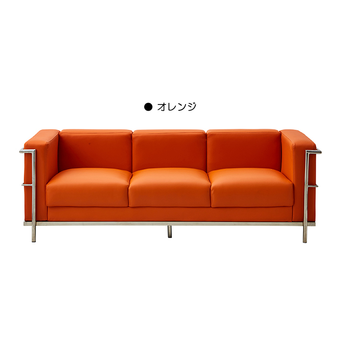 ソファー ソファ 3人掛け 3人用 ダイニングソファー ジェネリック家具 ダイニングソファ レザー おしゃれ オレンジ