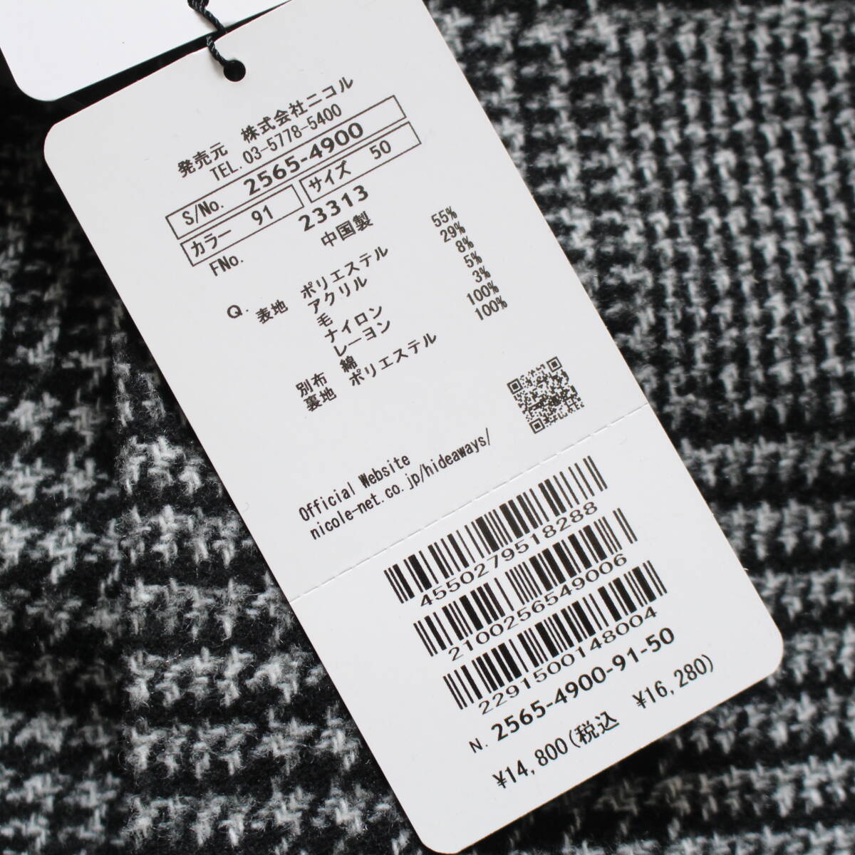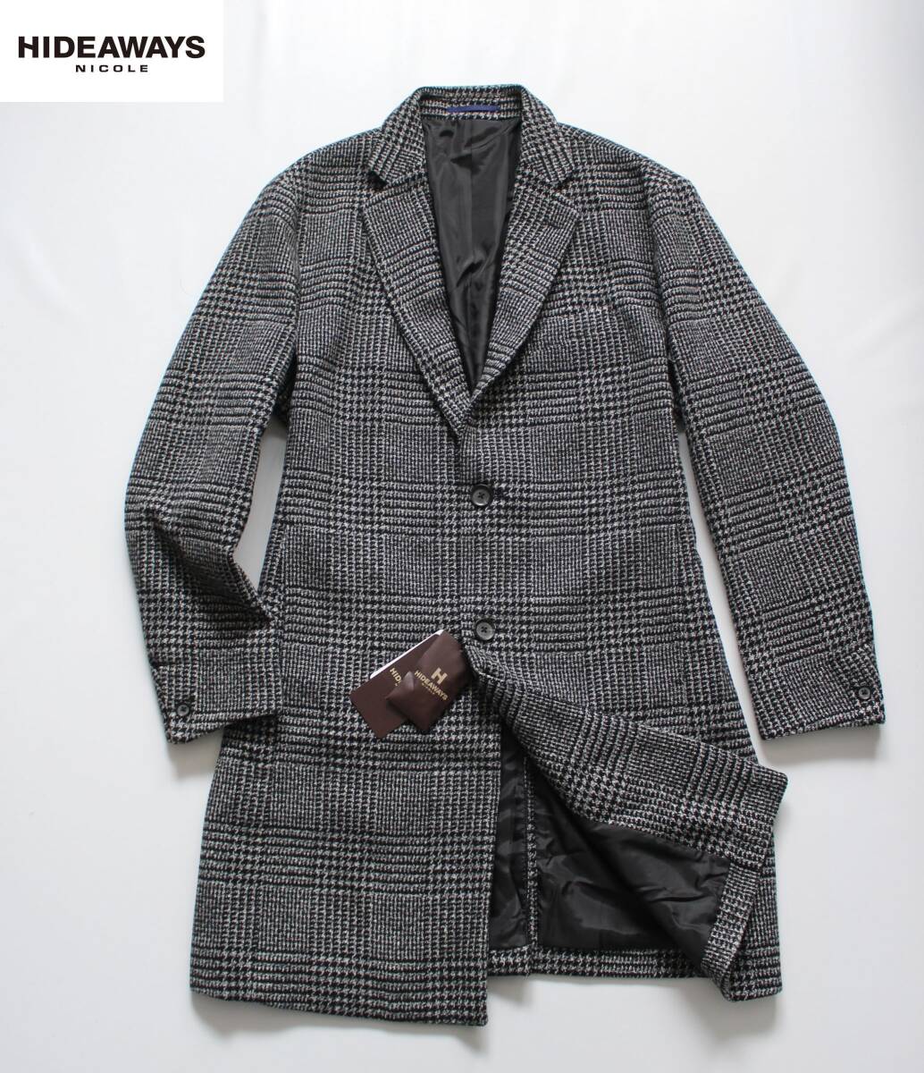 未使用【 HIDEAWAYS NICOLE ハイダウェイ ニコル 】ハイブリットメルトン チェスターコート 50 LL グレンチェック 2565-4900 定価\14,800