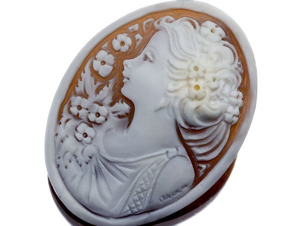 美しい貴婦人を繊細な彫刻で演出した素敵なシェルカメオルースです!