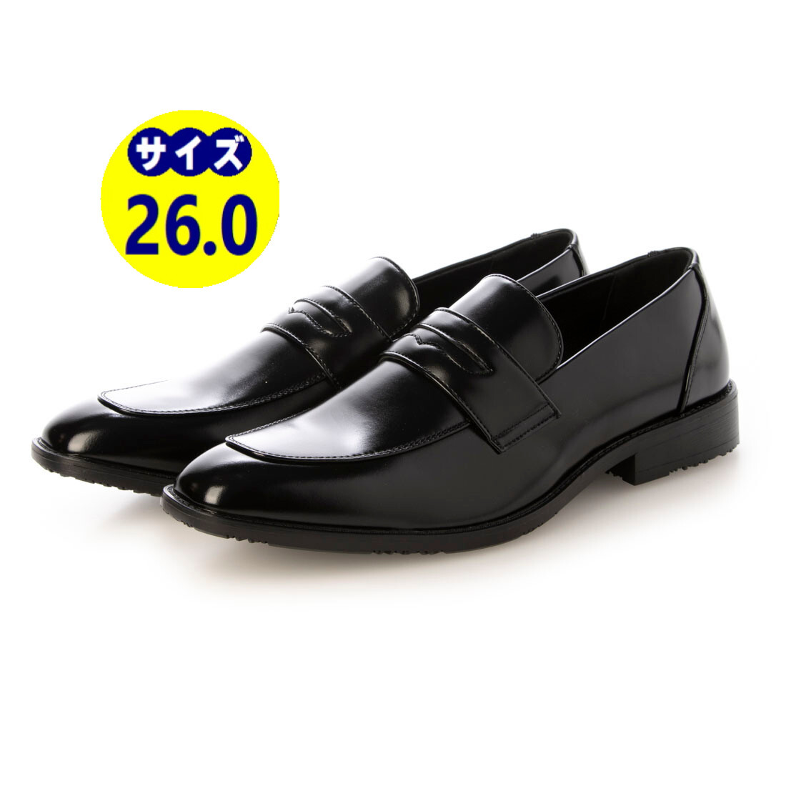 【新品】メンズ ビジネスシューズ『24104-blk-260』スリッポン ローファー カジュアルシューズ 防水 PUレザー 抗菌 制菌 防臭 消臭