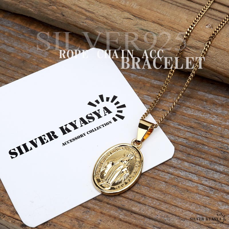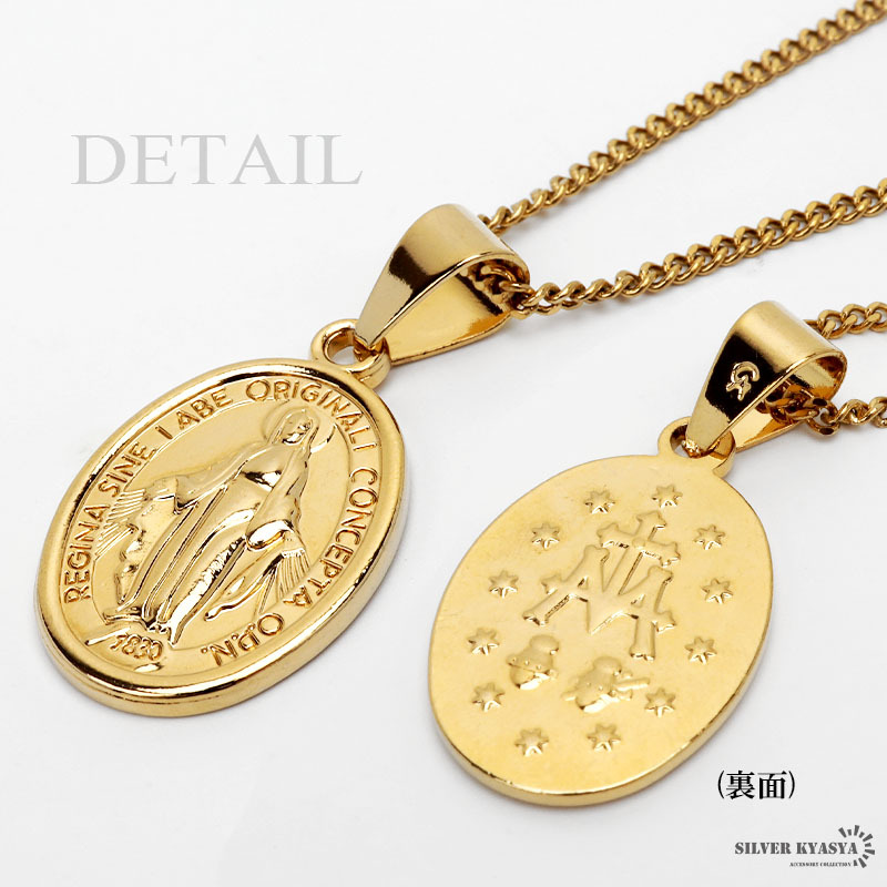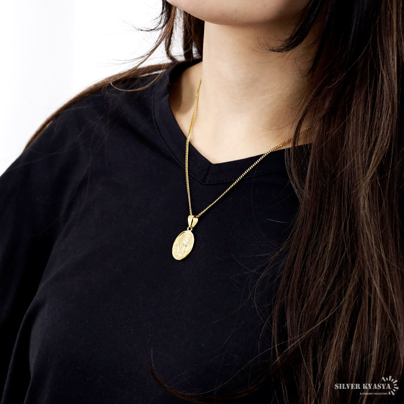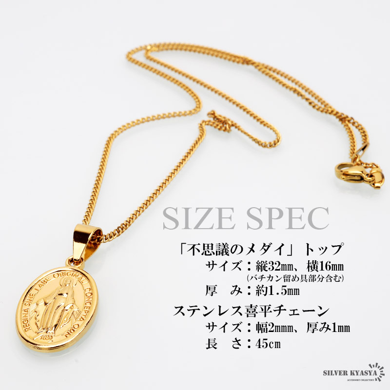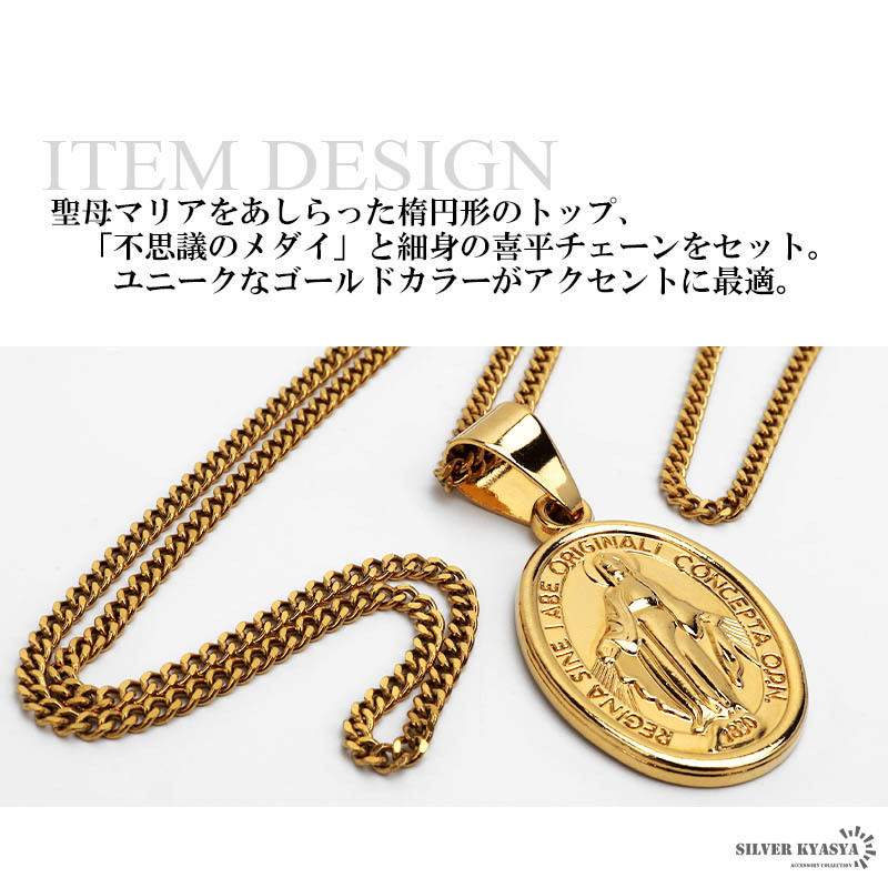 ステンレス マリア コインネックレス 喜平チェーン 細身チェーン ゴールドチェーン ゴールド 不思議のメダイ 聖母マリア 45cm