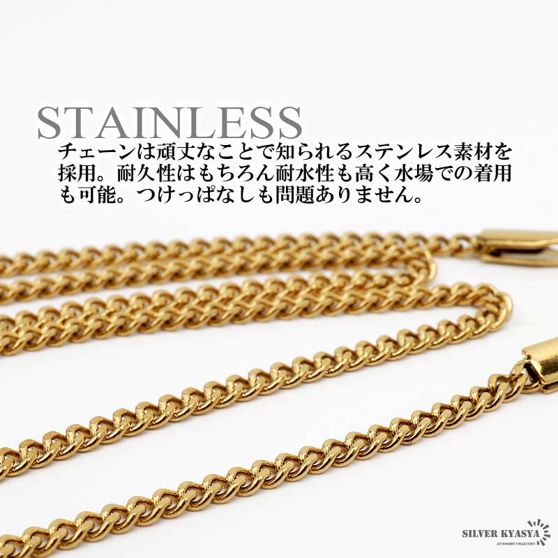 チェーンは頑丈なことで知られるステンレス素材を採用。耐久性はもちろん耐水性も高く水場での着用も可能。つけっぱなしも問題ありません。