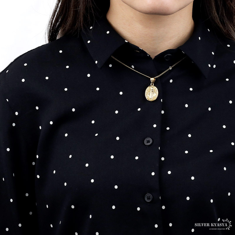 人気のゴールドメダイと細身の喜平チェーンを組み合わせた、ユニークながらもシンプルな仕上がりのネックレス。
