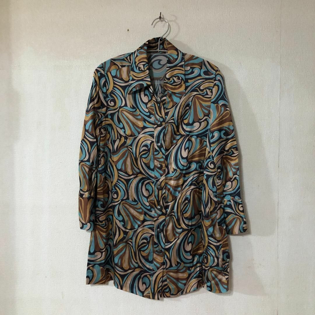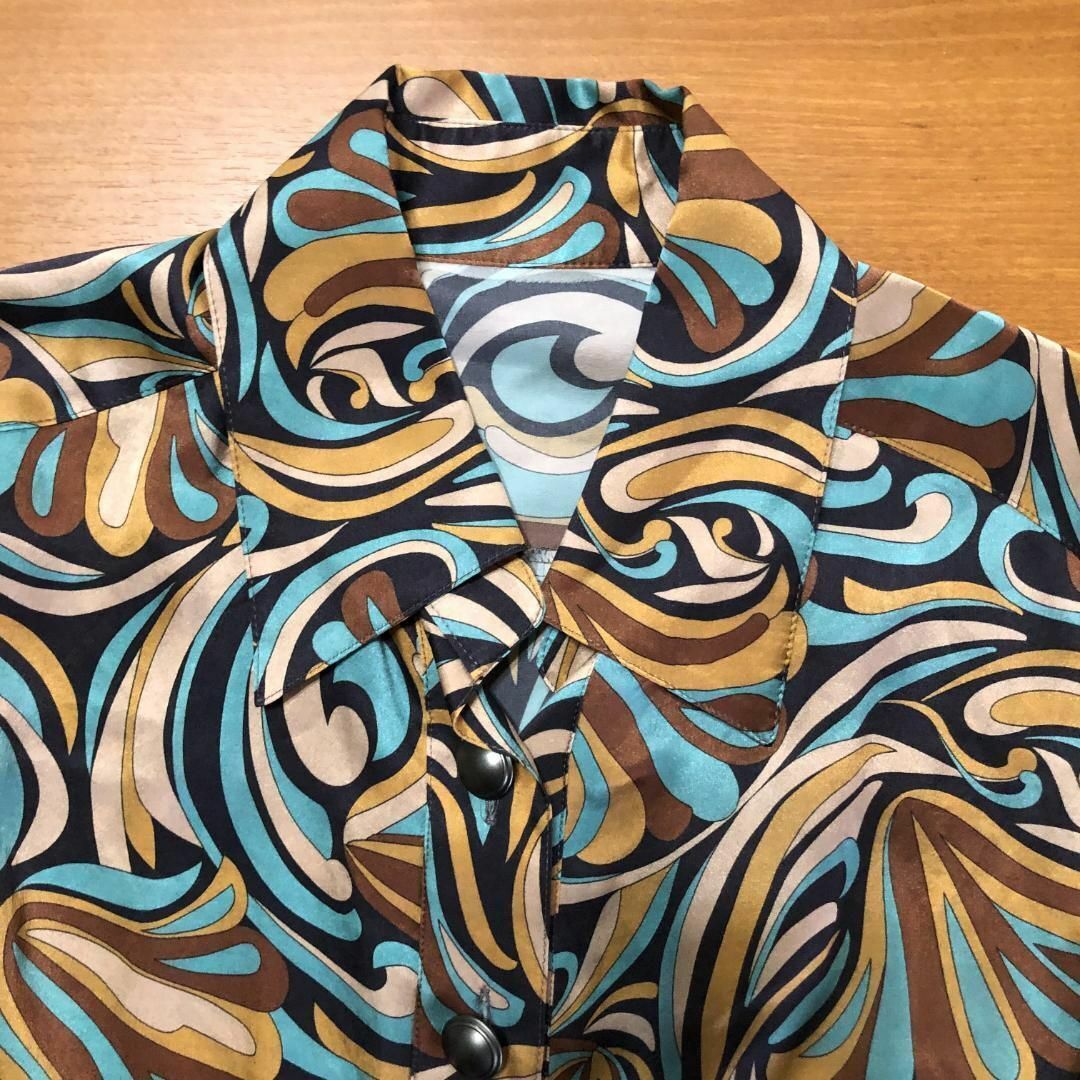 PRIDE プライド ドレスシャツ 総柄 アンティークボタン レディース B1480