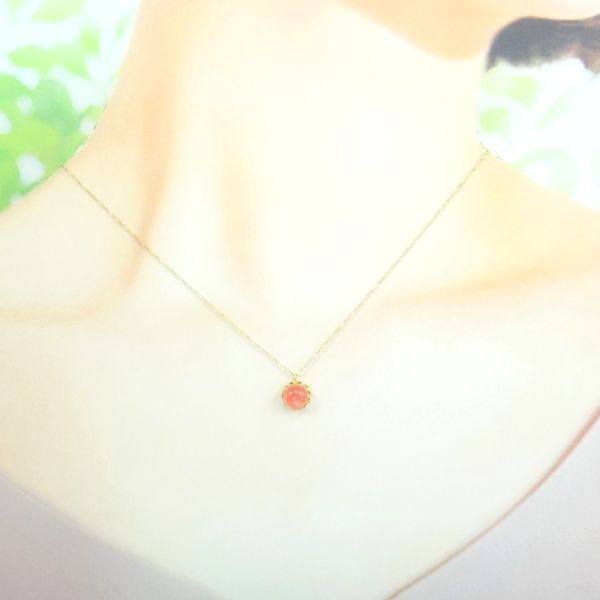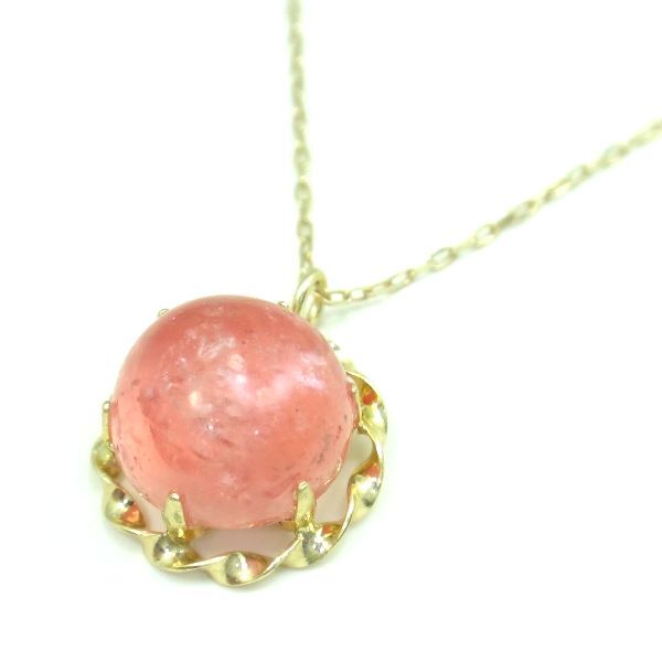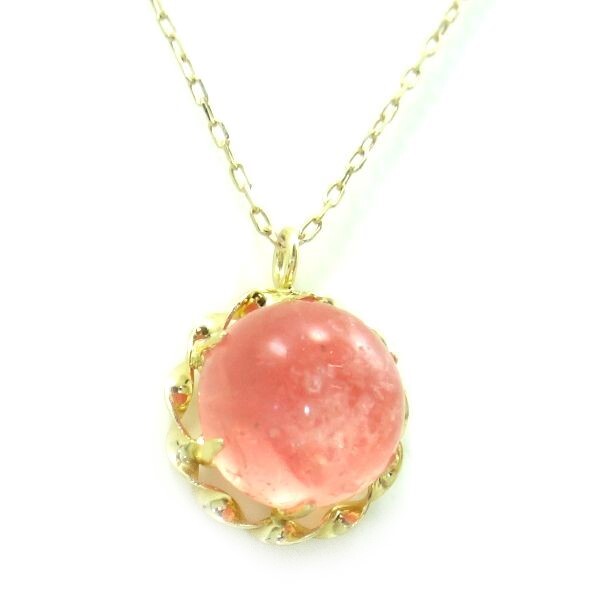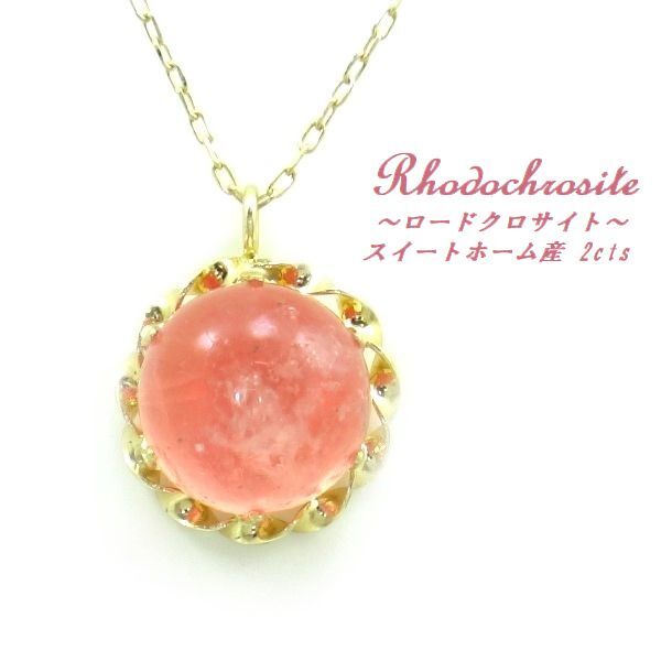 K18YG ロードクロサイト 2cts スイートホームマイン産 7mm カボション 大粒 ペンダント ネックレス 40cm ツイスト 高品質 ジュエリー