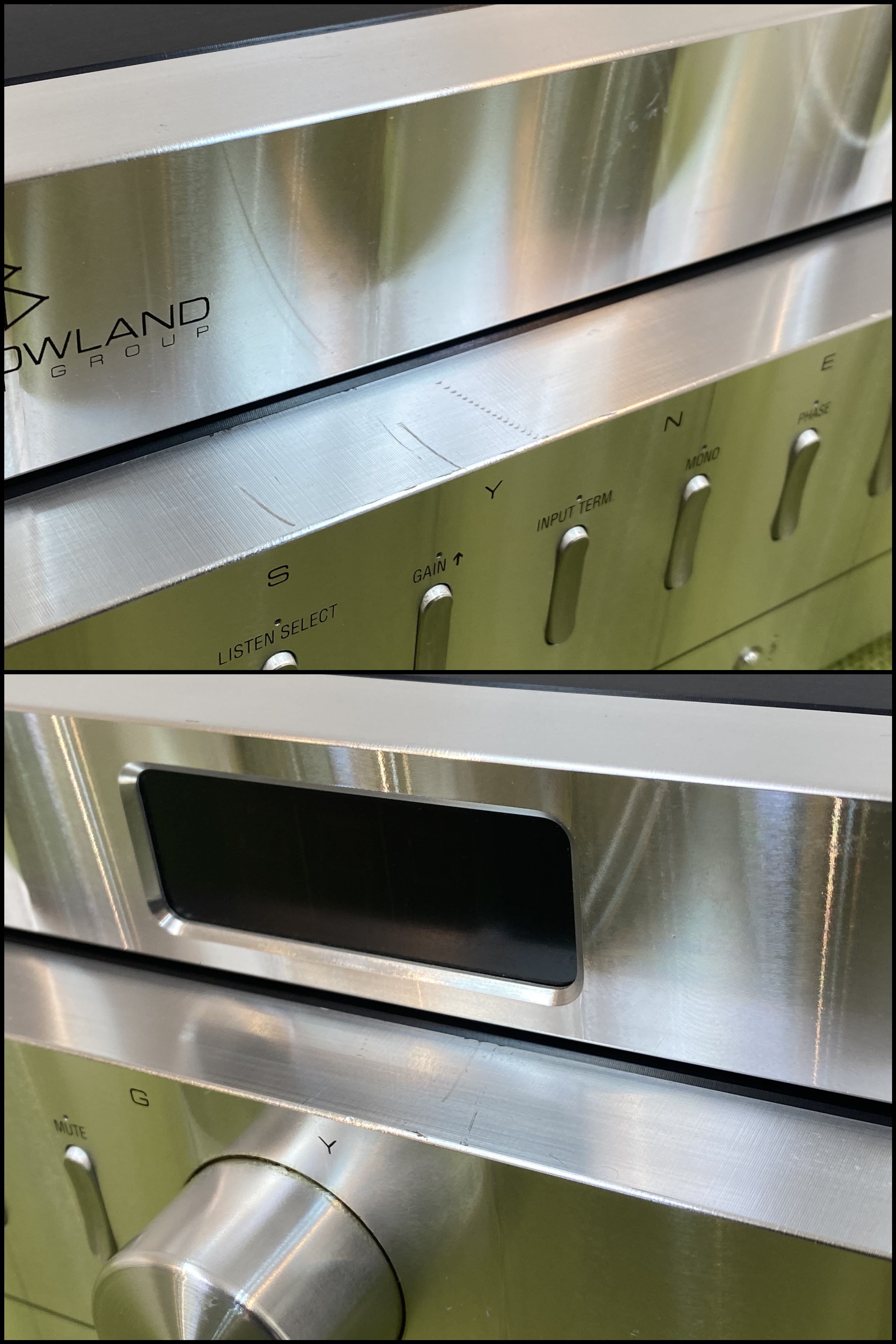 この度は弊社の出品物をご覧いただきありがとうございます! 今回こちらのお品物をご紹介させていただく『再良市場』の神谷と申します。 どうぞ最後までお読みいただければ幸いです。 こちらは Jeff Rowland Synergy Preamplifier ジェフ ローランド シナジー プリアンプ です。 動作確認済みの中古品となります。 【Jeff Rowland Synergy Preamplifier】 聴き手と聞きとの相乗効果という願いを込めて名付けられたプリアンプ。 当時ジェフ・ロゥランドが『世界で最も優れたオーディオアンプであると確信している』と称しており、 一台一台の全て一人の技術者がアセンブルし、その技術者の責任に於いて出荷する方式となっていました。 【コンディション】 各部の拡大やコンディションとしましては、以下の画像も併せてご覧ください。 ![]() 【シャーシ線キズ】 ![]() 【ケーブル】 ![]() 【プラグ拡大】※電源ケーブルについては純正品かは不明です。 コンディションとしましては、 動作につきましては、弊社にてスピーカー音出しして動作を確認しました。 基本的には問題ありませんでしたが、バイパス接続時に若干のショックノイズを確認しました。 外観上では、使用感に伴いシャーシに線キズや、前オーナー様によって3ピンコンセントプラグの内アース部が切り落とされております。 また、リモコンは欠品しております。 使用自体には問題はございません。 皆様のご入札をお待ちしております。 再良市場の他のお品物はこちらから!