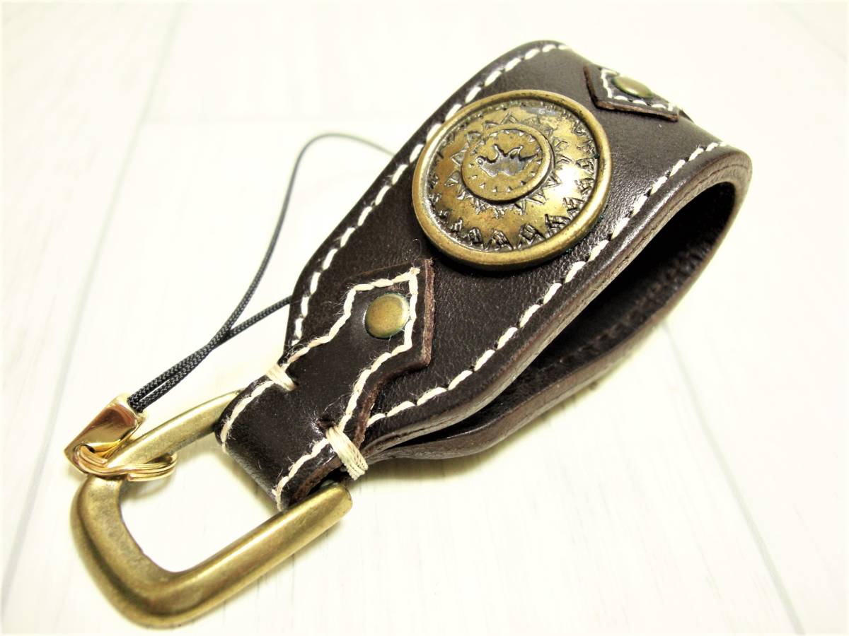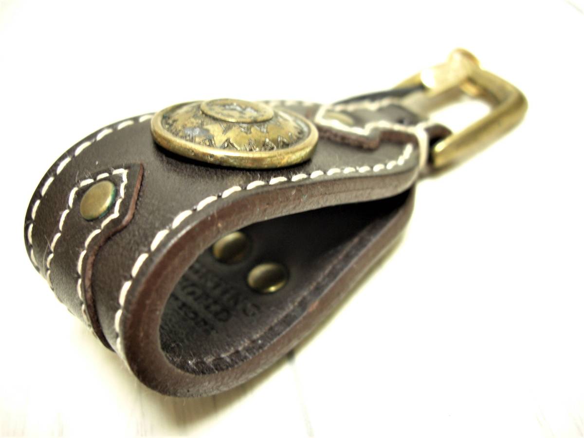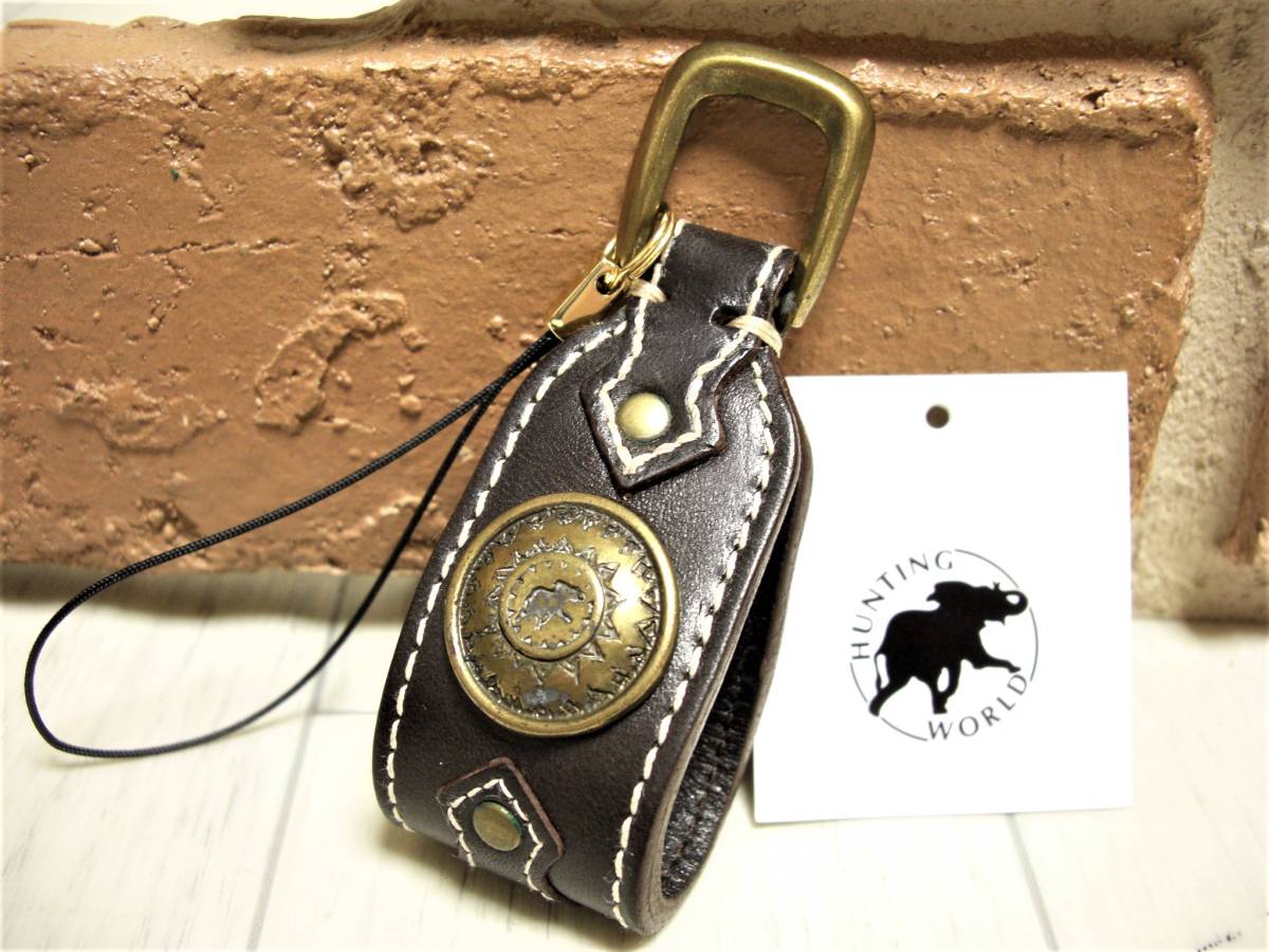 ♪完売!少量限定生産(100個?限定!)『ウエスタンバチュー・コレクションライン』のイタリア製・最高級ハンドクラフト仕上げ『両面に、象ロゴマーク刻印コンチョ装飾&ネイティブ装飾デザイン』の『多目的ストラップ・キーリング・スマートフォン・携帯電話等用ストラップ・ウオレットチェーン等取付用ベルトループ・バッグアクセサリー』!!!
