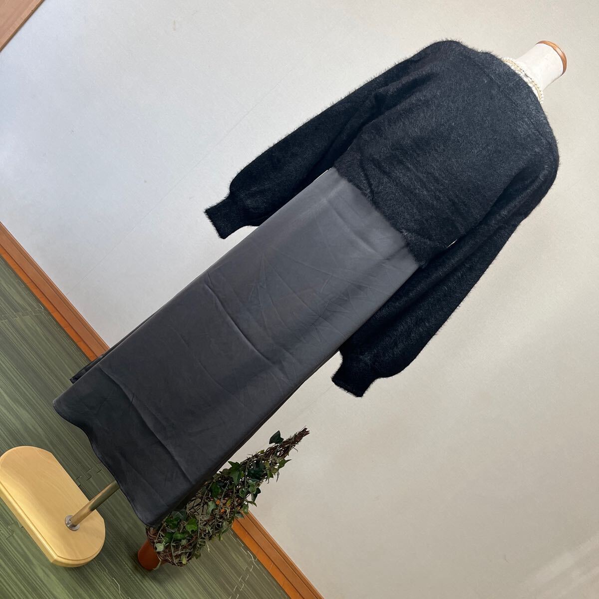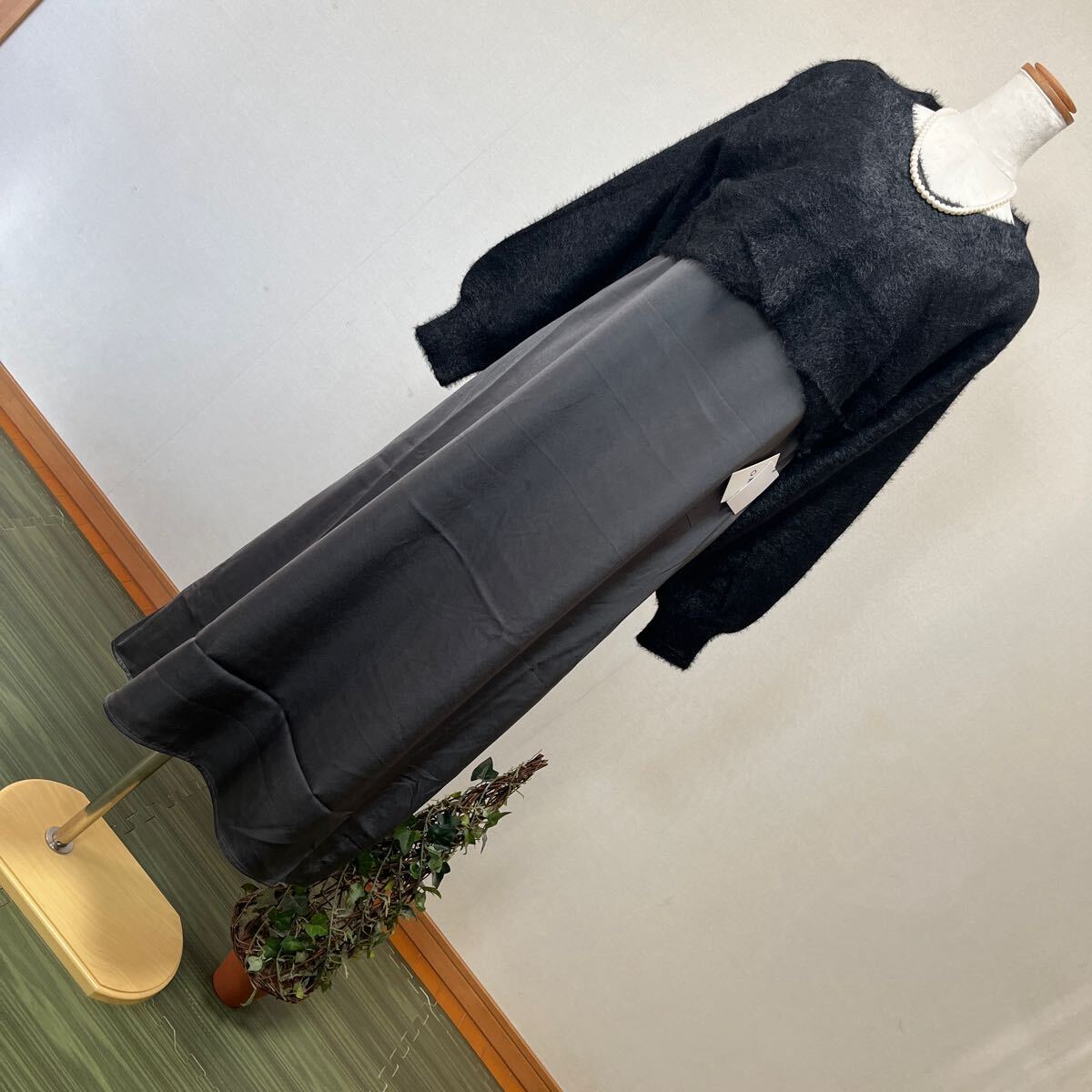新品のボリュームスリーブでフェミニン要素をプラスしたトップスと、キャミワンピースがセットに。 ふわふわのシャギーニットと、なめらかな肌触りのワンピースの組み合わせがおしゃれ。 ワンピースには裏地が付いていて、タイトめのシルエットでも歩きやすさを加味。 それぞれ単品使いもしやすいので、着回しバリエーションがグッと広がる。