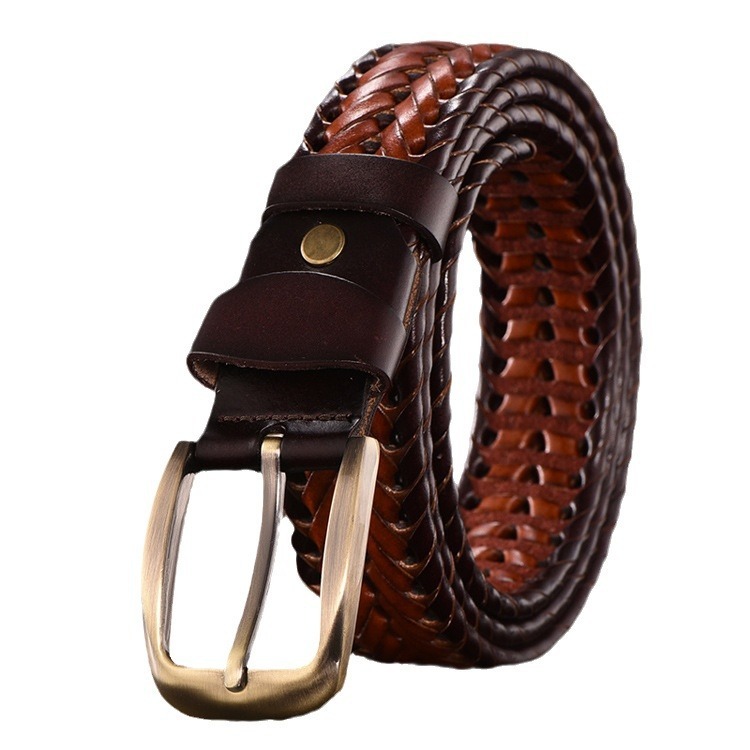 新入荷人気推薦ベルト メンズ ブラウン 編み込み 本牛革ビジネスカジュアルゴルフ シンプル  スーツ レザー デニム 茶 レディース