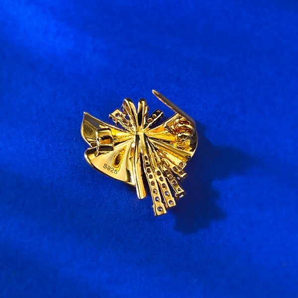 女性用925スターリングシルバーと18K金メッキのボウノットブローチ、高炭素ダイヤモンド、カクテルパーティー、記念日ギフト