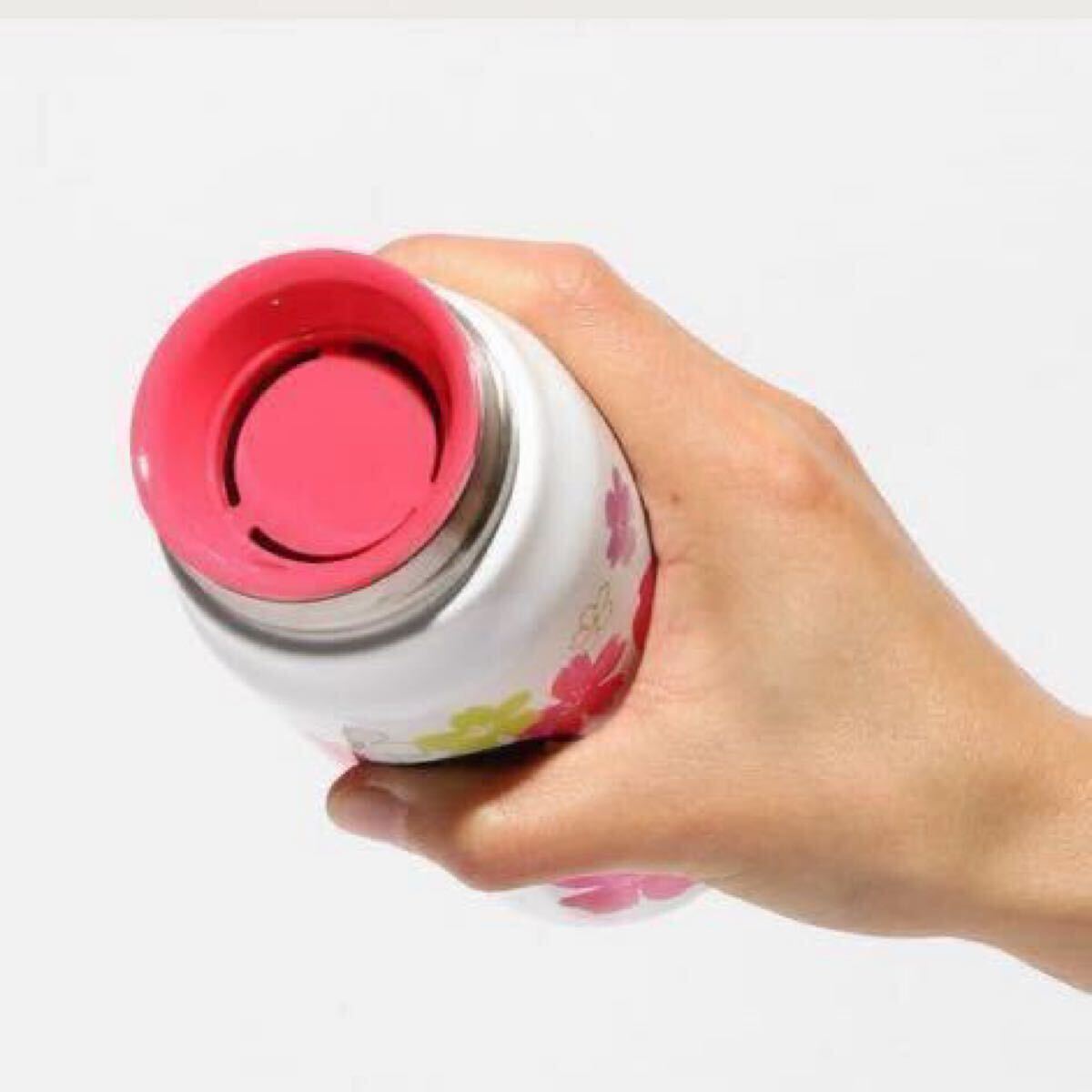 ホワイトのボディにピンクやパープル、イエローの桜が鮮やかに映えるデザインです。リッドのビビッドなピンクもアクセントになっていて、コンパクトなサイズ感も魅力的です。真空二重構造ステンレスで保温・保冷性に優れています。
