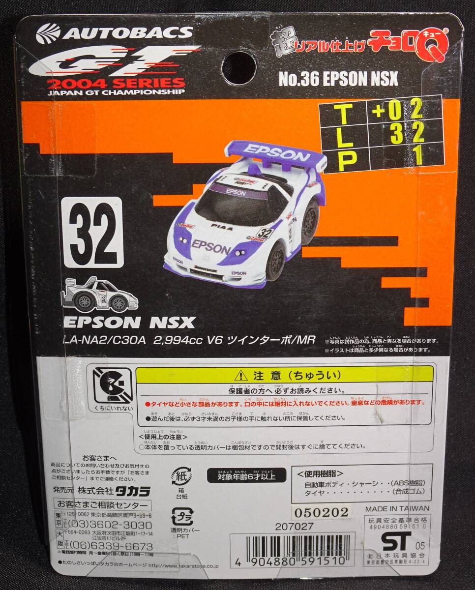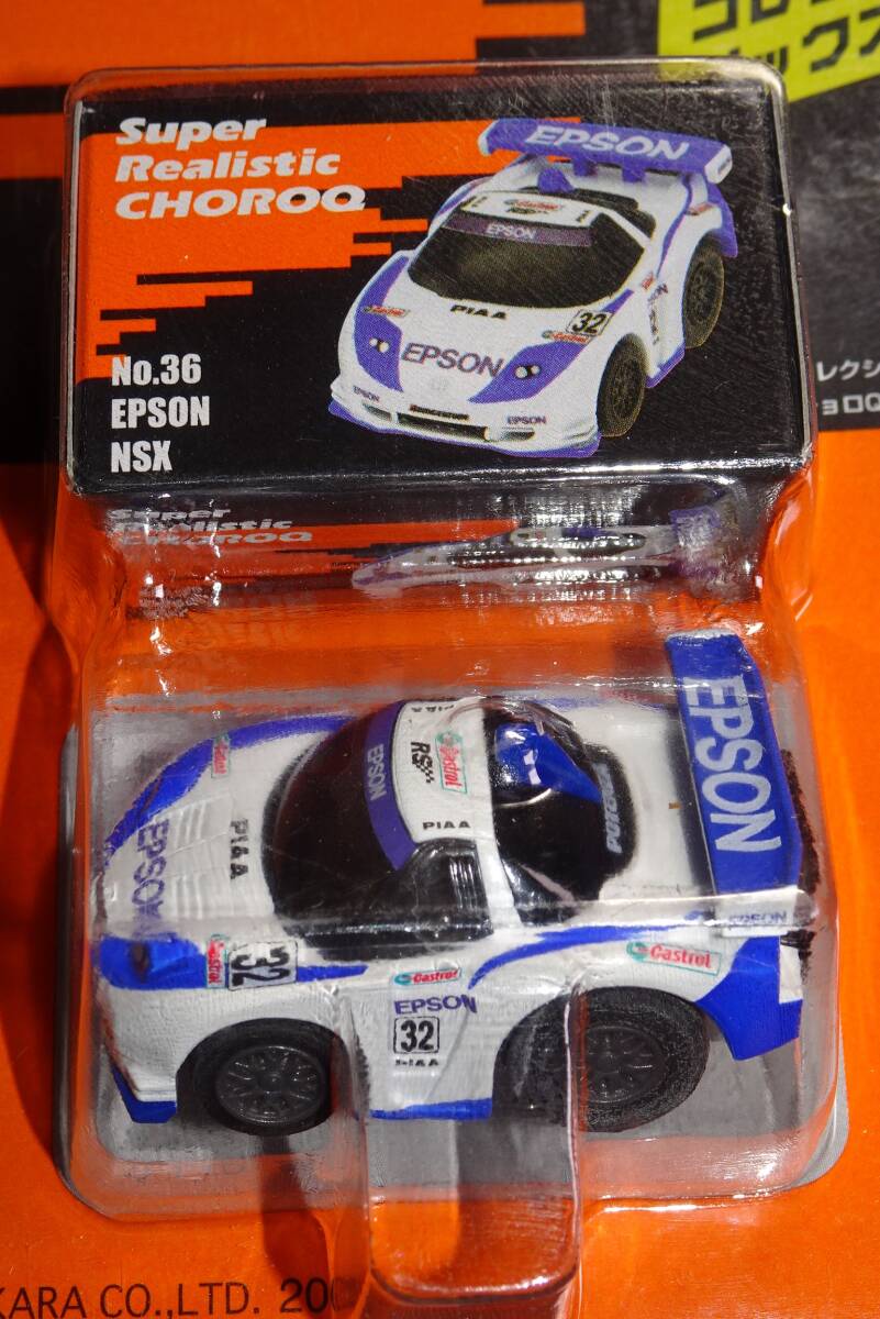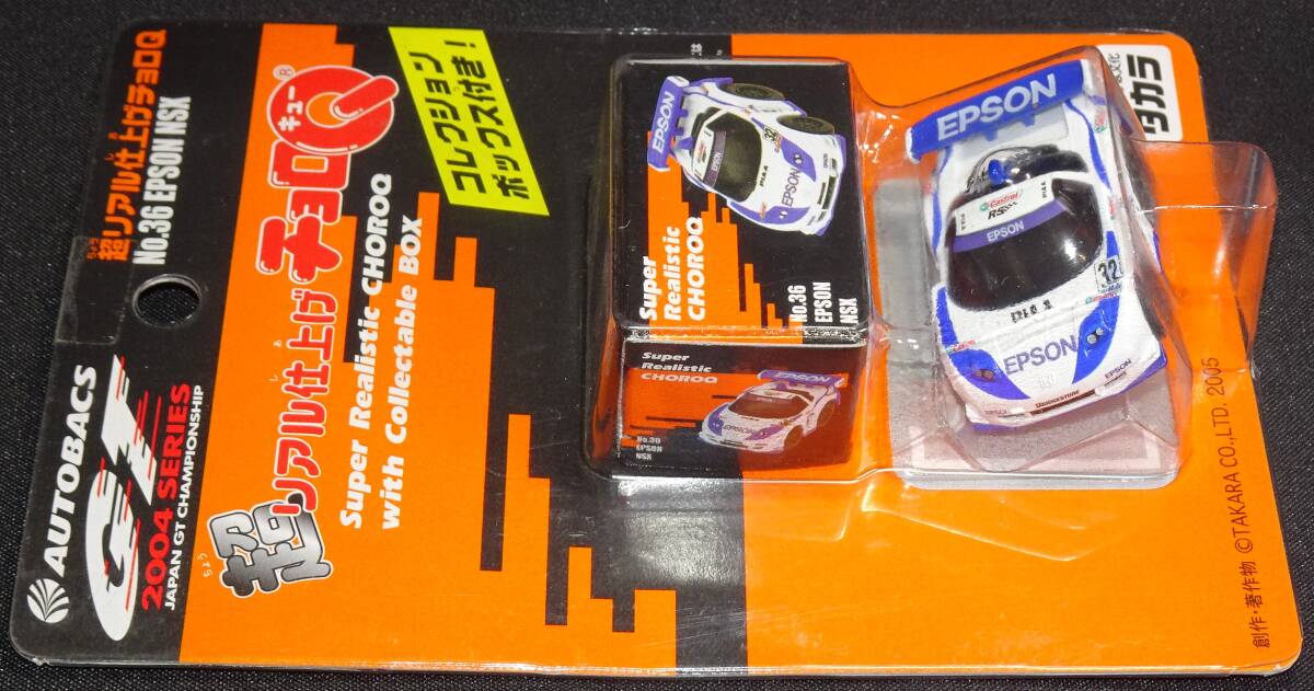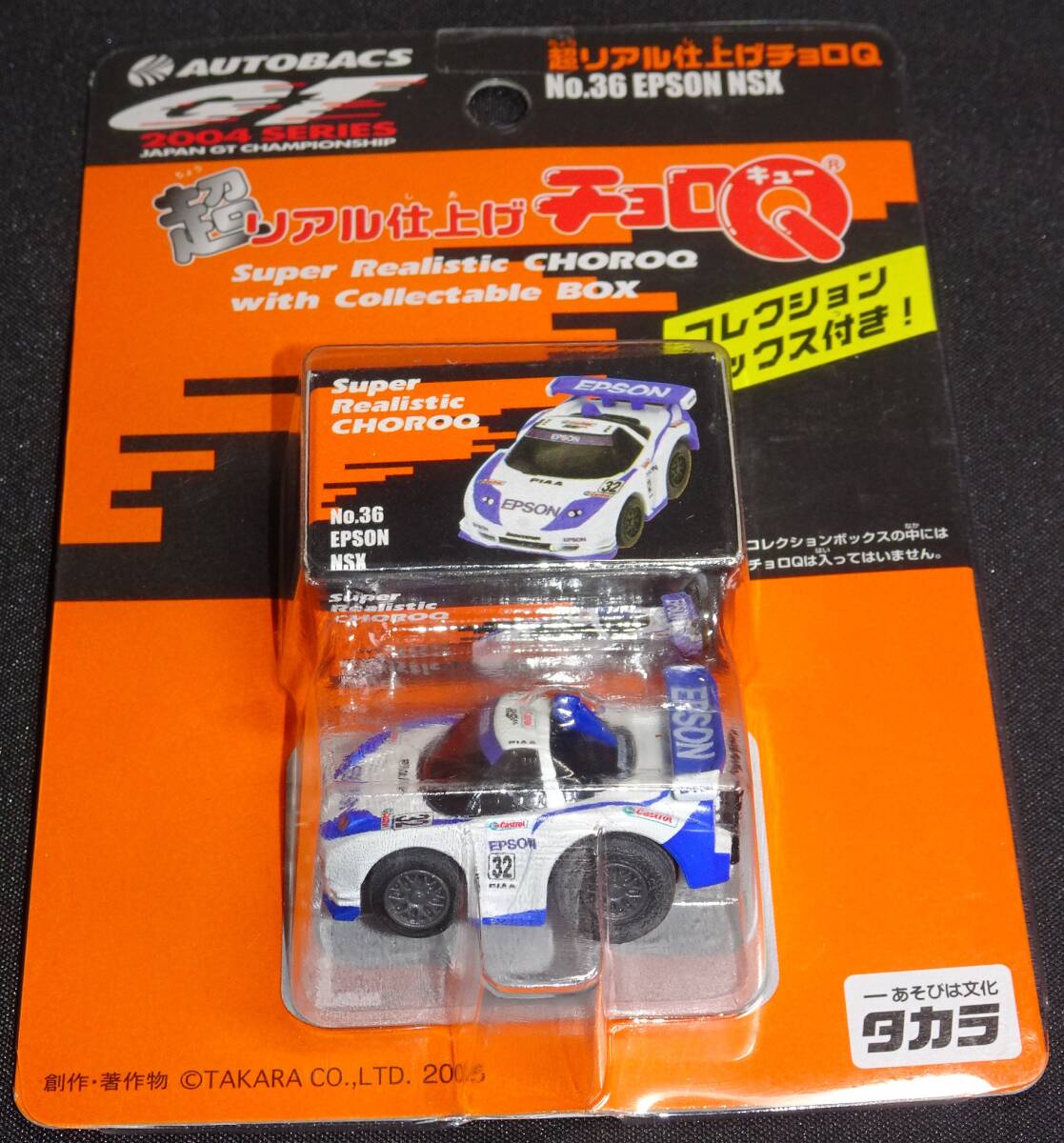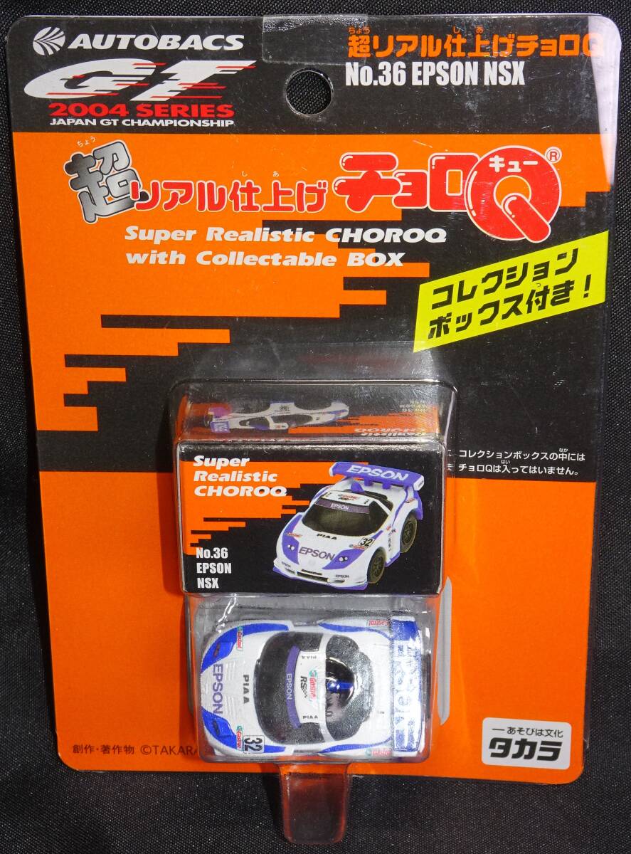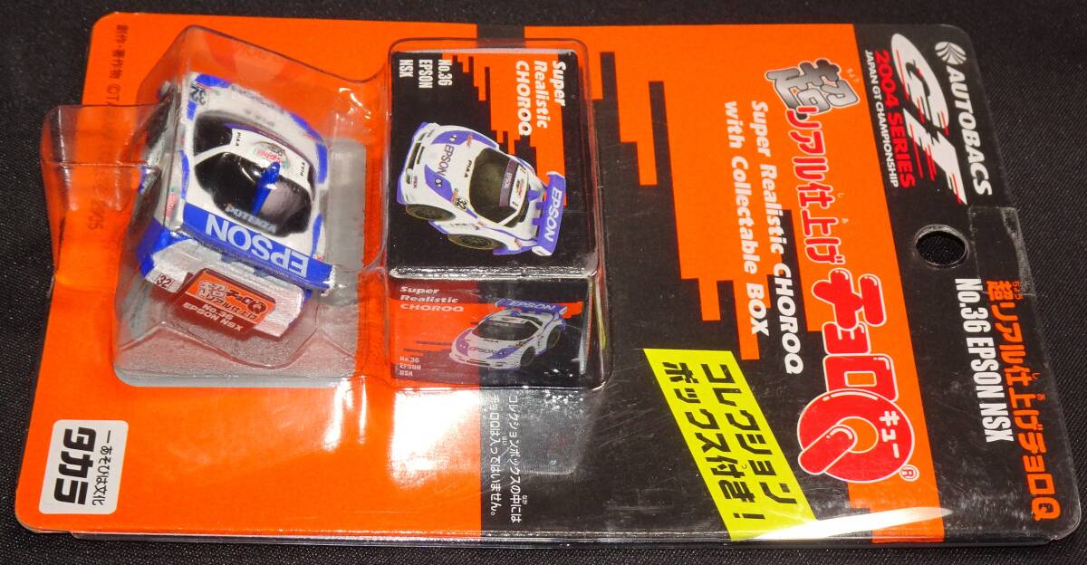 2005年頃、タカラより発売された超リアル仕上げチョロQ No.36 エプソン NSXの出品です(SUPER REALISTIC CHORO Q, TAKARA, EPSON NSX)。コレクションの整理のために出品します。