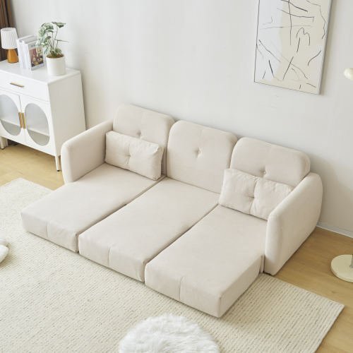 ◆【極厚座面/高弾性/クッション付き】ソファーとしての厚さは34CMでソファーベッドとしての厚さは20CM又は高品質なスポンジ使用で座り心地がよく、長時間座っても疲労感が感じにくい!2人と三人のソファー、ソファーベッドには二つのクッション付きます。枕は柔らかく弾力性があり、横になるとリラックスして包まれているように感じ、疲れを取り除き、リラックスした快適な気分にさせます。腰当にも枕にも使えるクッション付きで、さらに快適なリラックスタイムに。