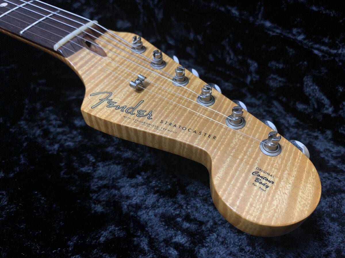 ネックのグリップは60s系の薄めのCシェイプで、フレットはミディアムジャンボ、指板ラジアスは9.5インチだと思われます。
