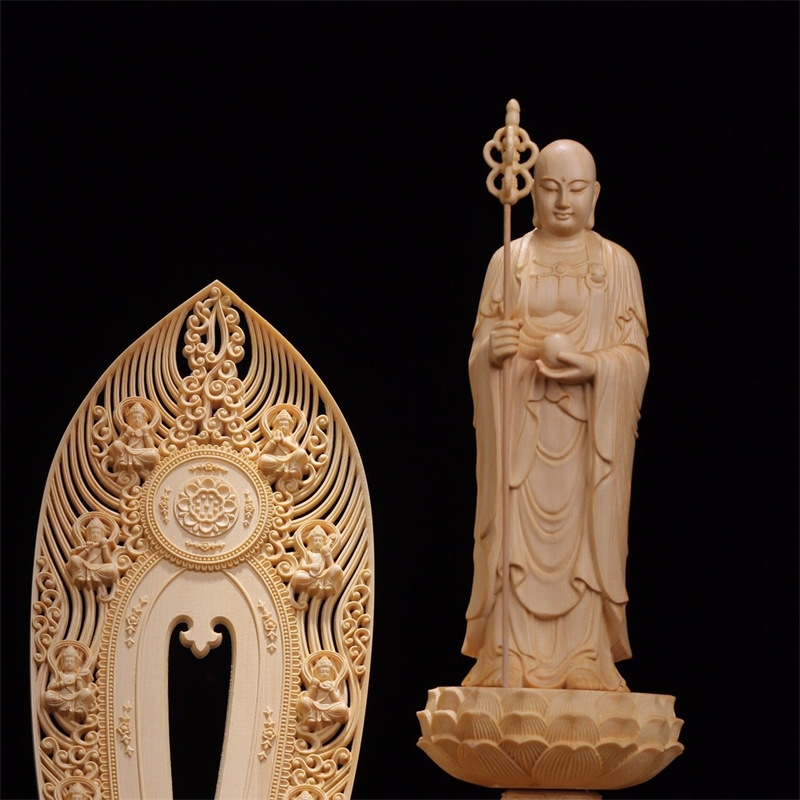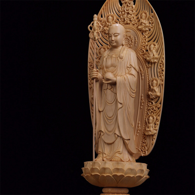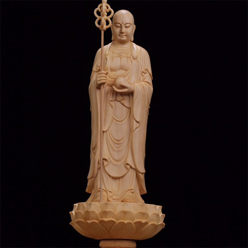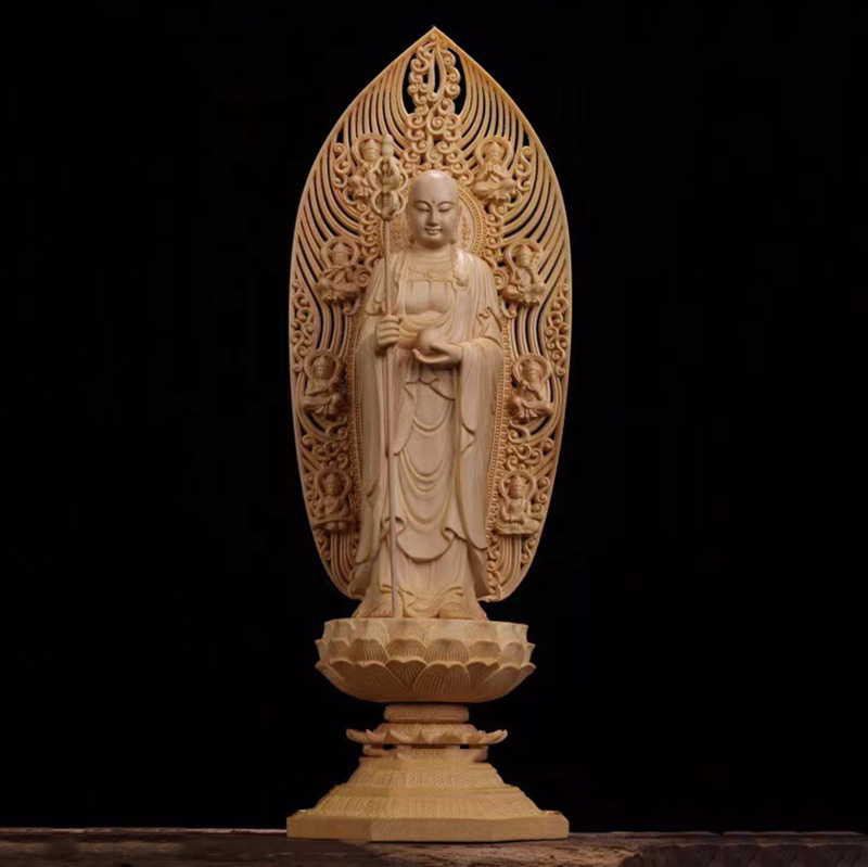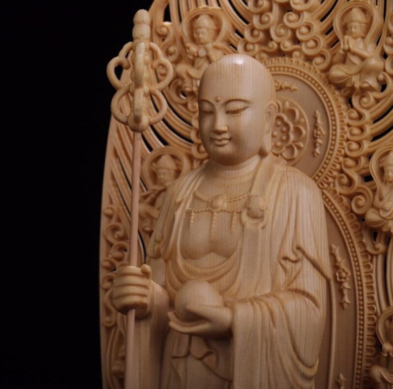 大人気 総檜材 木彫仏像 仏教美術 精密細工 仏師で仕上げ品 地蔵菩薩立像 高さ43cm