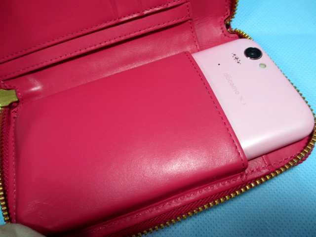 スマートフォンも収納可能なラウンドファスナー折財布です。