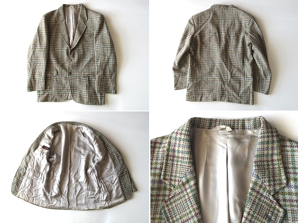 イヴサンローランのジャケット。チェックのウールツイードを使用しております。前立ては2B。滑りの良い裏地を当てておりますので、袖通しも良く仕上がっております。上質な素材使いと綺麗なシルエットで、様々なコーディネートにお使い頂ける一着です。