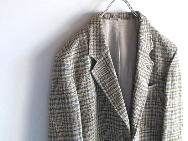 70sビンテージ YVES SAINT LAURENT sportswear イヴサンローラン チェック ウールツイード 2Bテーラードジャケット 52 イタリア製 EURO古着