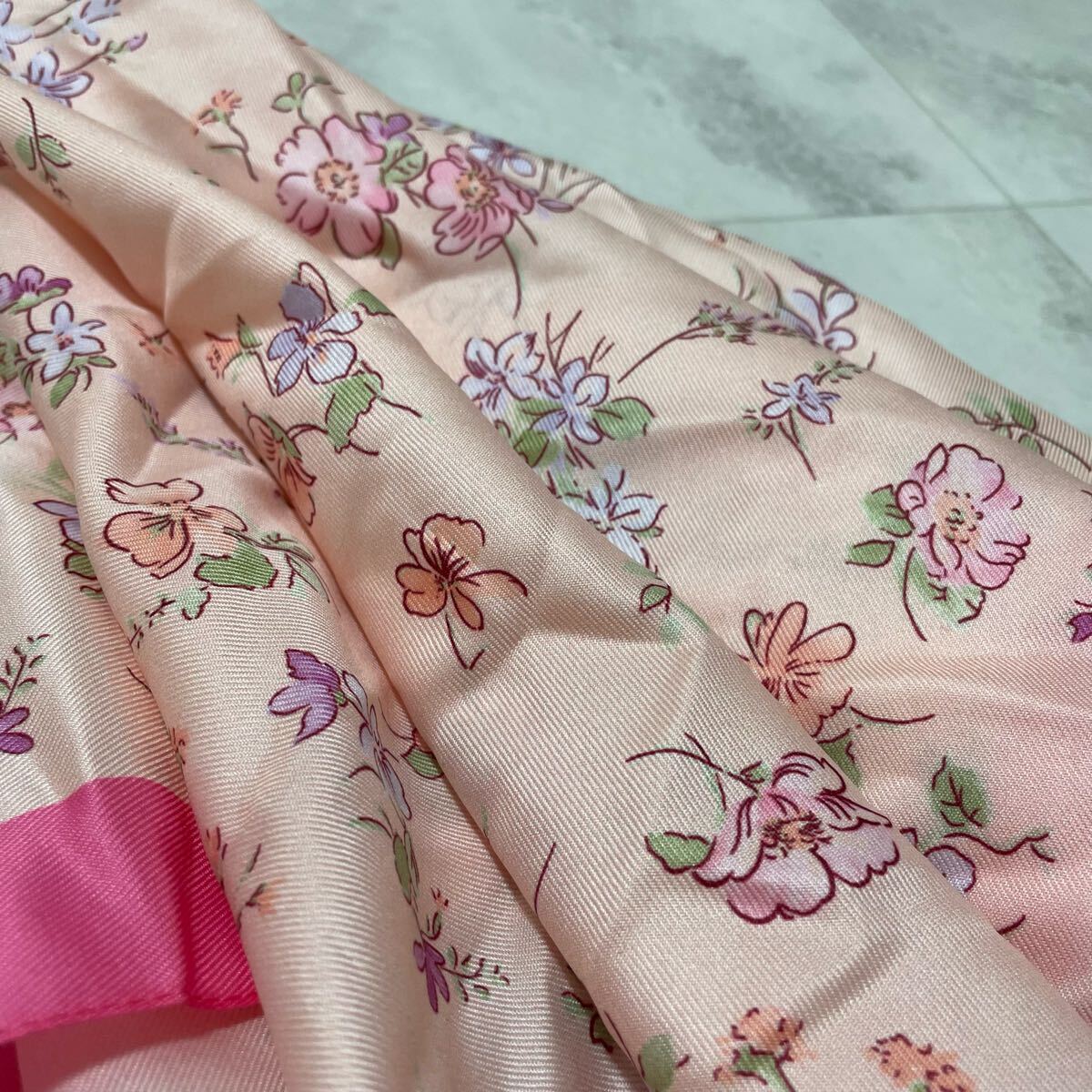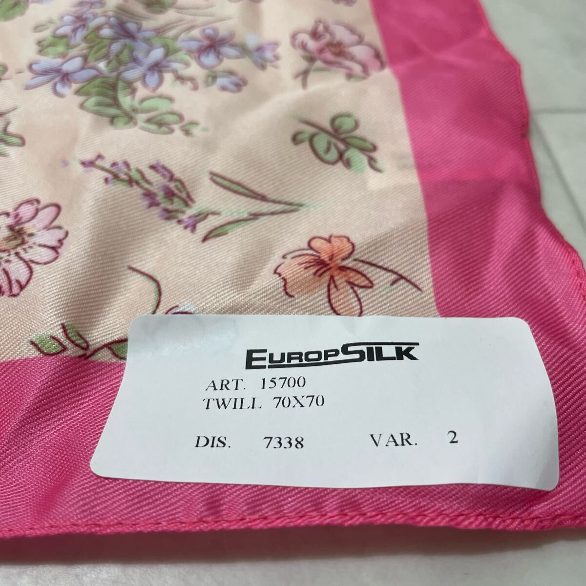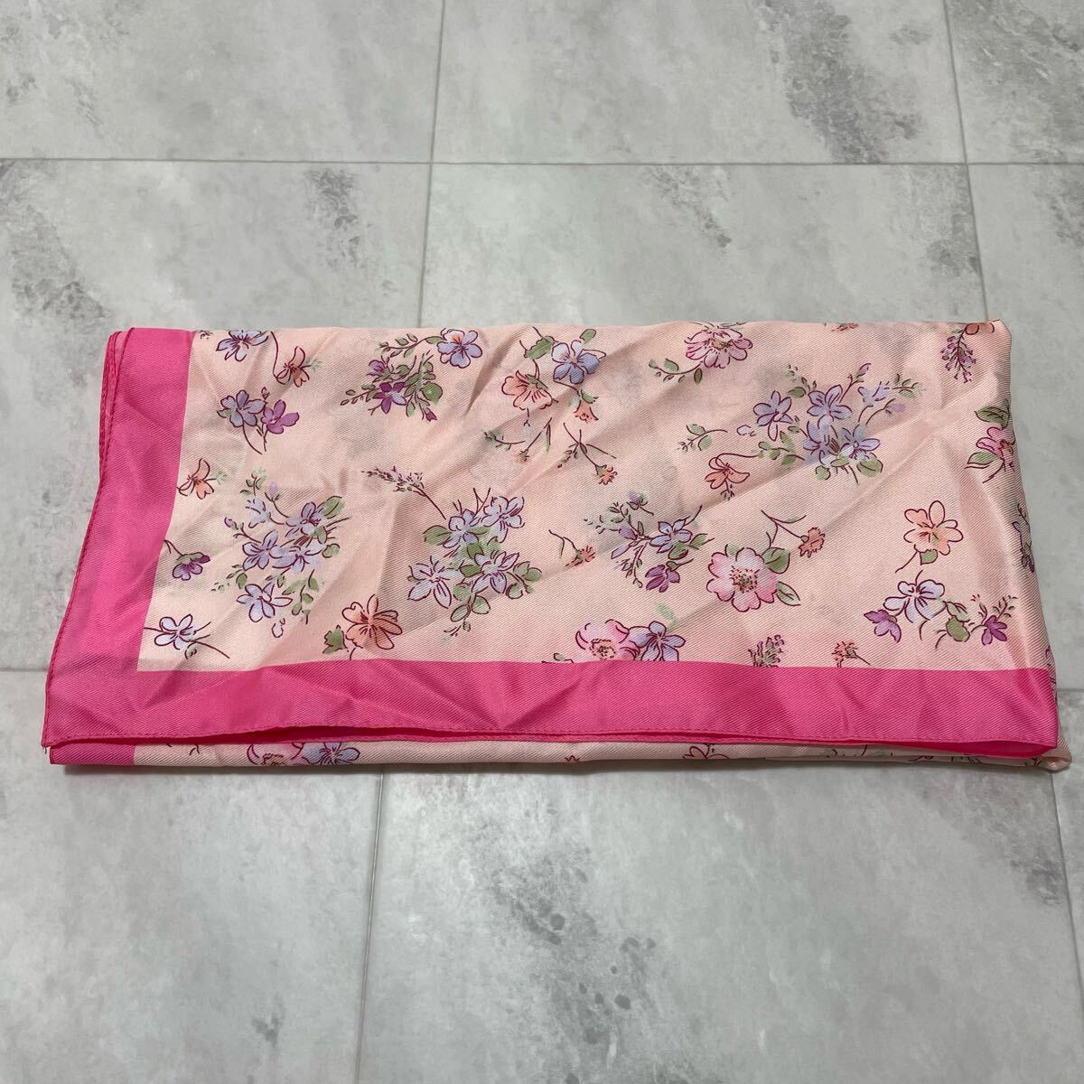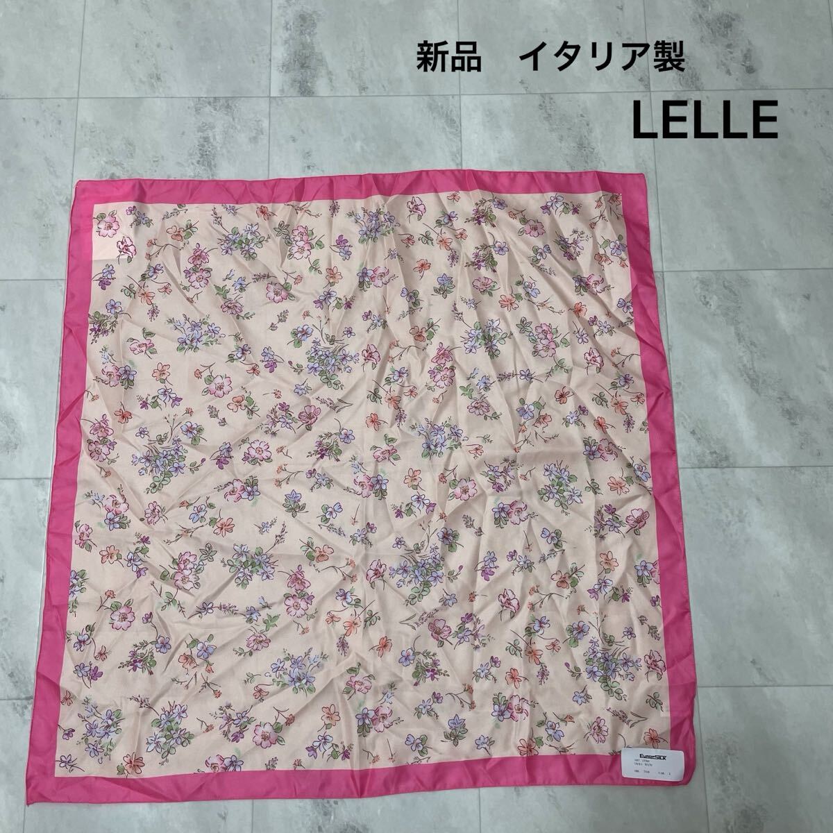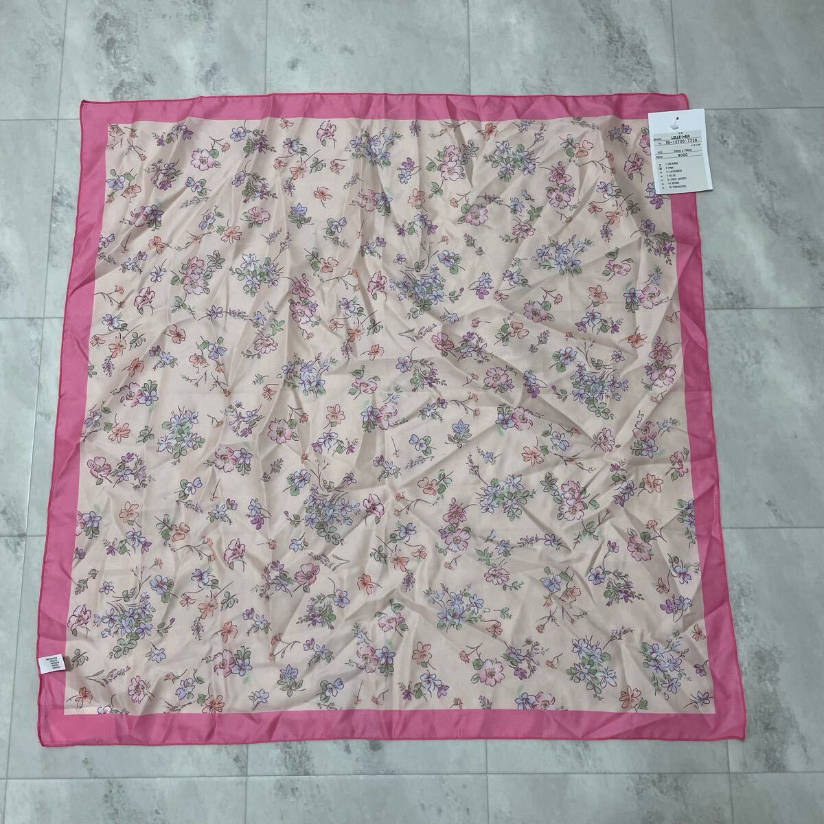 新品 イタリア製 LELLE レレ バンダナ スカーフ 大判 定価9000 花柄 総柄 made in italy ポリエステル ピンク レディース 玉SS3068