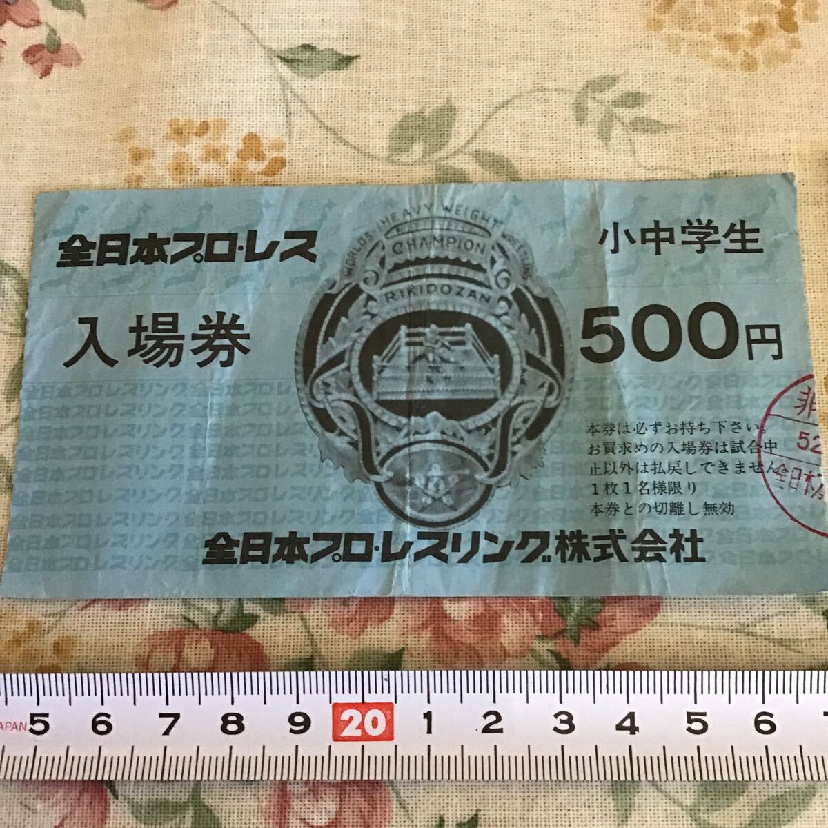 プロレスチケット 全日本プロレス PWFヘビー アジアヘビー Wタイトルマッチ G馬場 VS 大木金太郎 大阪 入場券 小中学生 500円 使用済 を