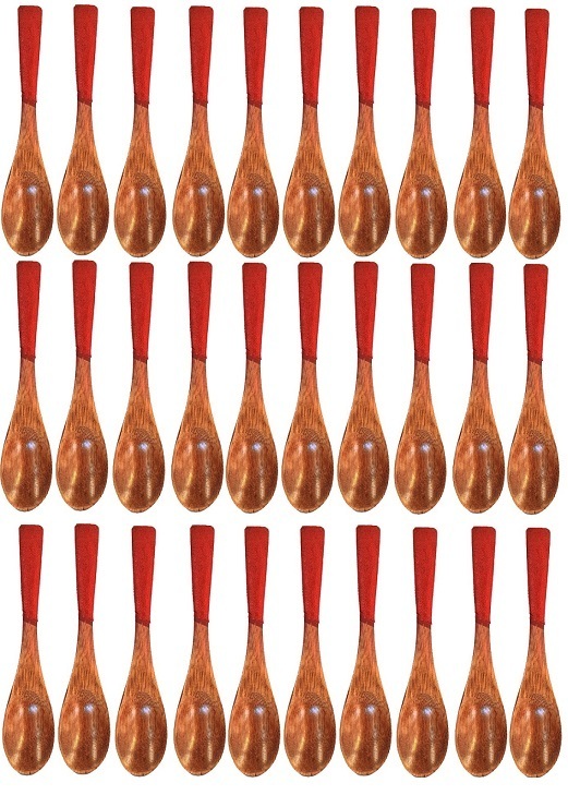 ☆木製布貼漆塗り コーヒースプーン(赤)全長約120mm30本新品