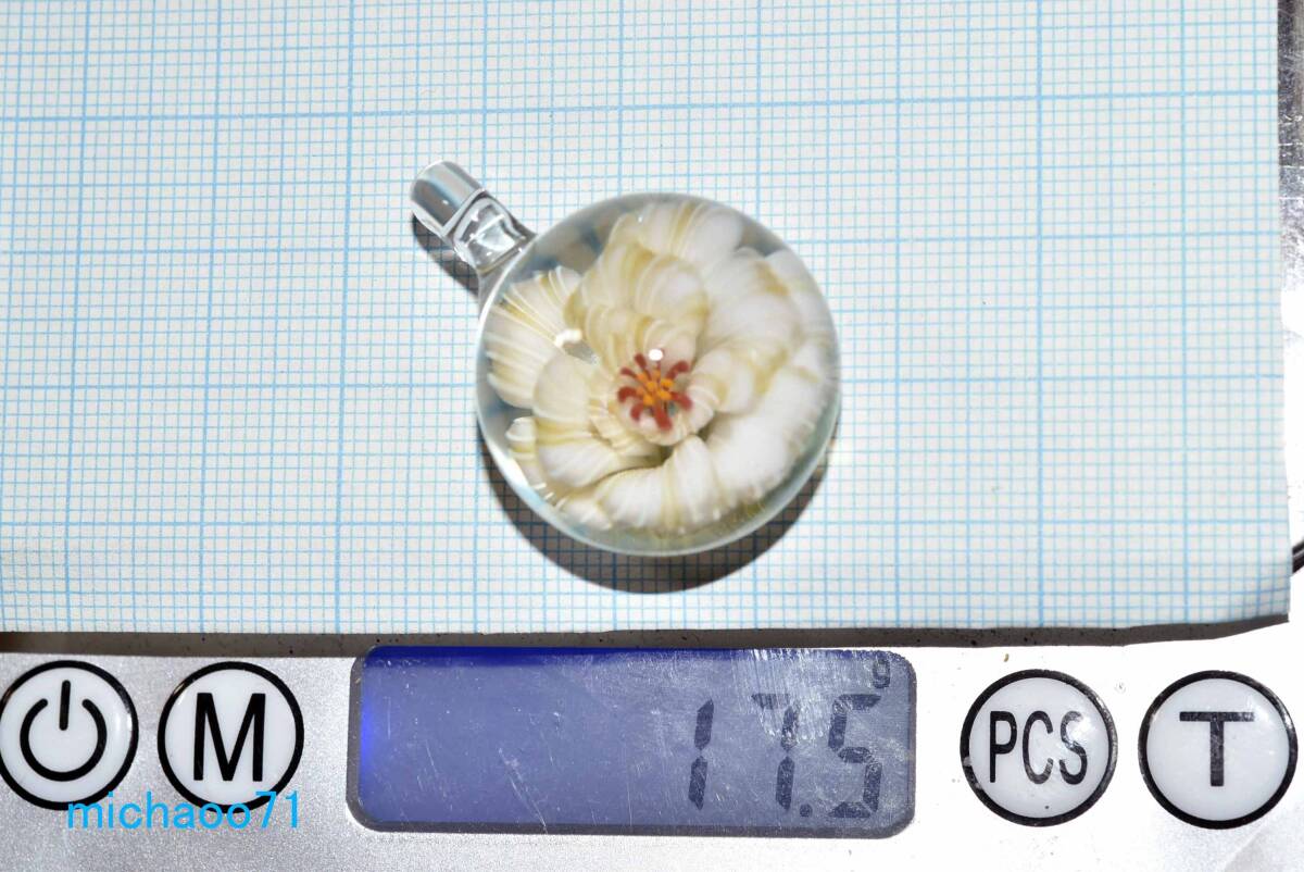 フラワー ガラスのペンダントトップ (12132-P21) GLASS FLOWER 透き通ったガラスの中に作咲く花 #ガラスアクセサリー #ハンドメイド